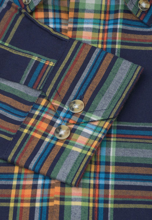 Brook Taverner Regular Fit Navy Check Cotton Oxford Shirt