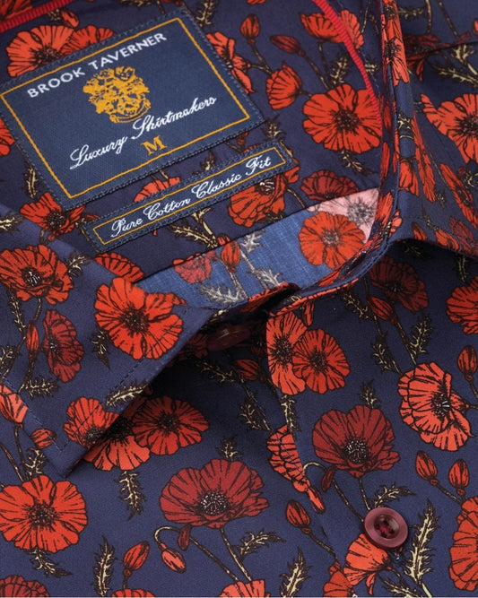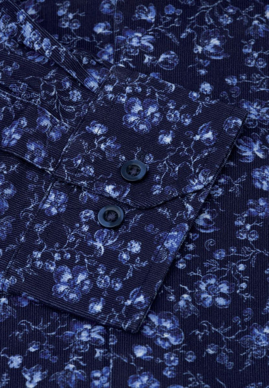 Brook Taverner Regular Fit Navy Floral Needlecord Cotton Shirt