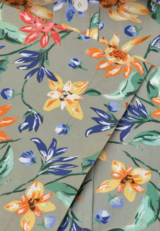 Brook Taverner Regular Fit Sage Retro Tropical Print Short Sleeve Shirt