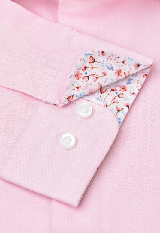 Brook Taverner Regular Fit Pink Herringbone Stretch Cotton Shirt