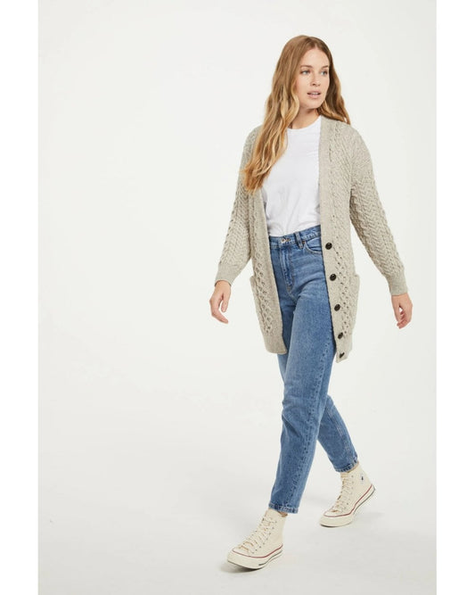 Aran Woollen Mills Glebe Aran Long Line Cardigan