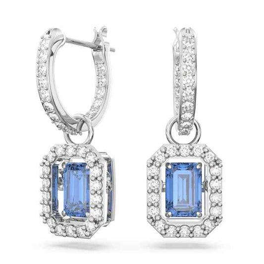 Swarovski Millenia Octagon Cut Blue Stud Earrings - Rhodium Plated