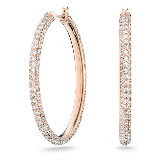 Swarovski Stone Pierced Hooped Earrings in Silk Crystal and Rose Gold Plate