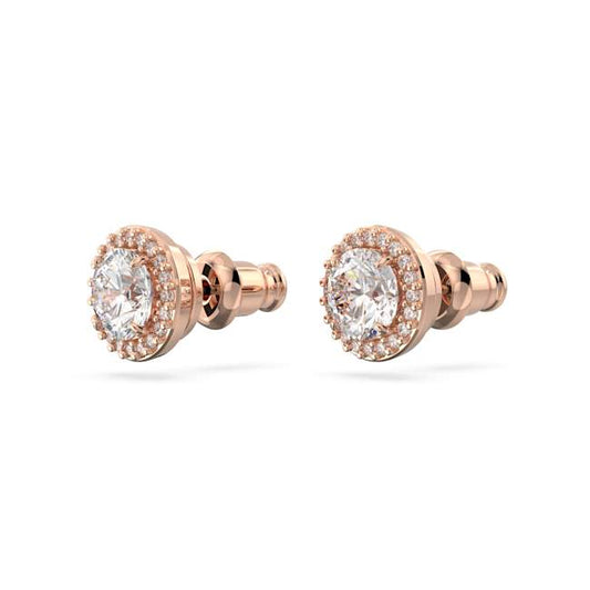 Swarovski Una stud earrings, Round cut, Pavé, White, Rose gold-tone plated