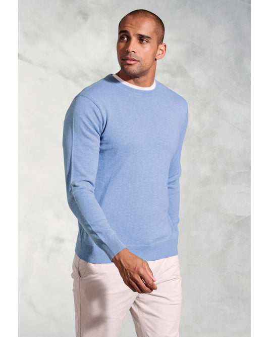 • London Sky Blue Cotton Merino Crew Neck Jumper