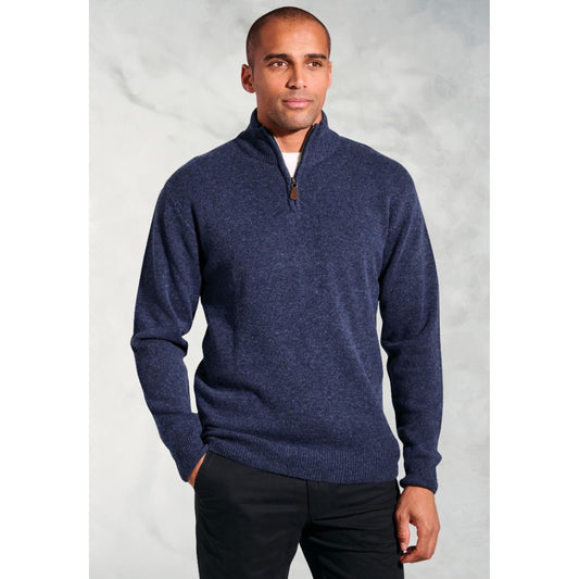 Brook Taverner Rutherford Navy Lambswool Zip Neck Jumper