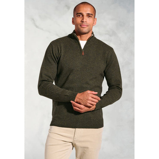 Brook Taverner Rutherford Khaki Lambswool Zip Neck Jumper