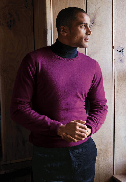 Brook Taverner Devon Raspberry Cotton Merino Crew Neck Jumper