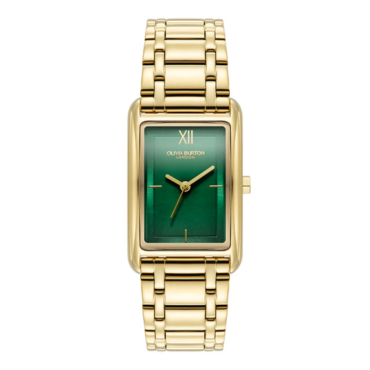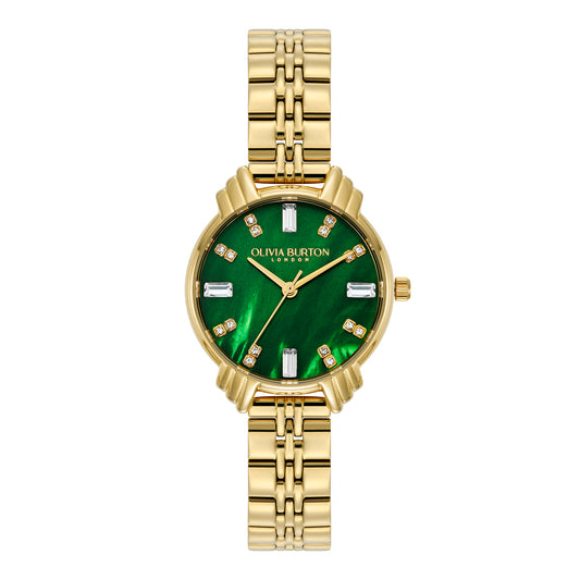 Olivia Burton Classic 30mm Art Deco Emerald & Gold Bracelet Watch
