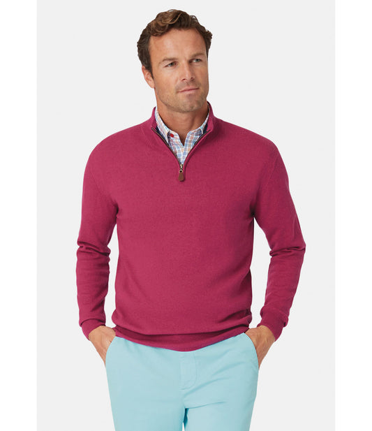 Brook Taverner Sussex Raspberry Cotton Merino Zip Neck Jumper