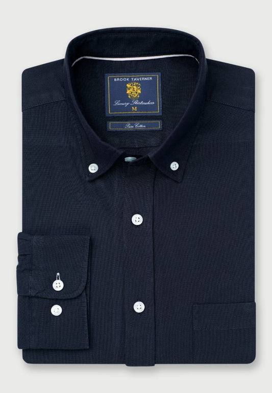 Brook Taverner Regular Fit Navy Cotton Oxford Shirt