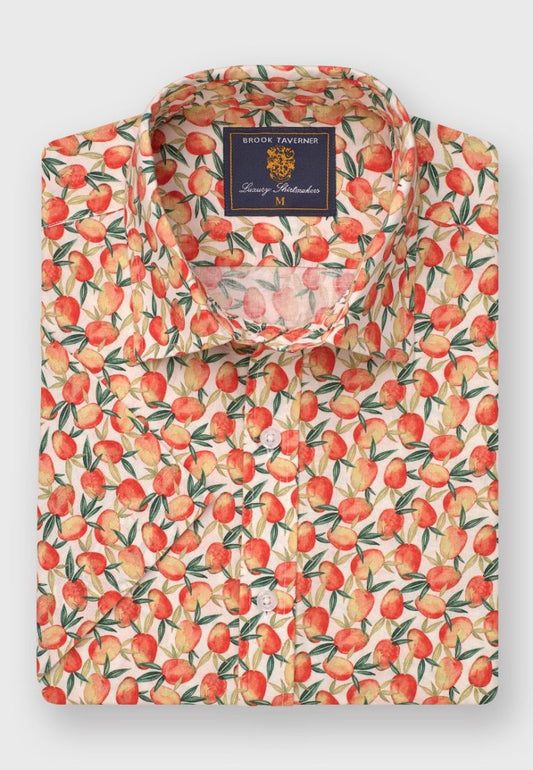 Brook Taverner Regular Fit Sage Retro Tropical Print Short Sleeve Shirt