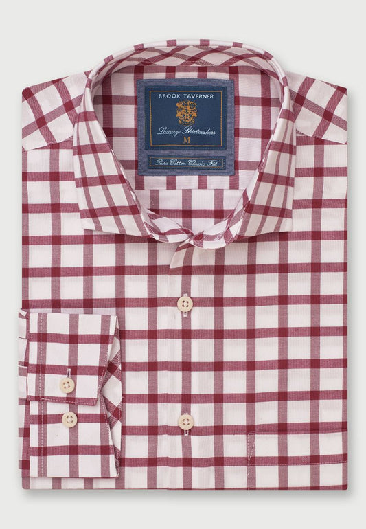 Brook Taverner Regular Fit Fit Wine Check Cotton Oxford Shirt