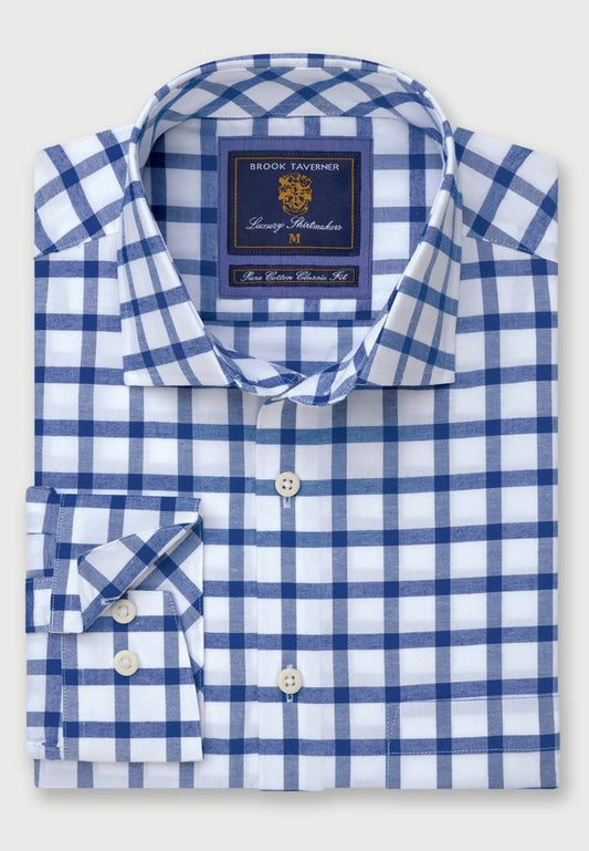 Brook Taverner Tailored Fit Navy Check Cotton Shirt