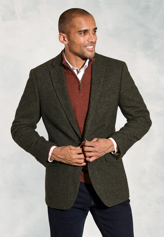 Brook Taverner Regular Fit Dee Olive Herringbone Wool Blend Jacket