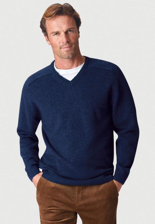Brook Taverner Barton Navy Lambswool V-Neck Jumper