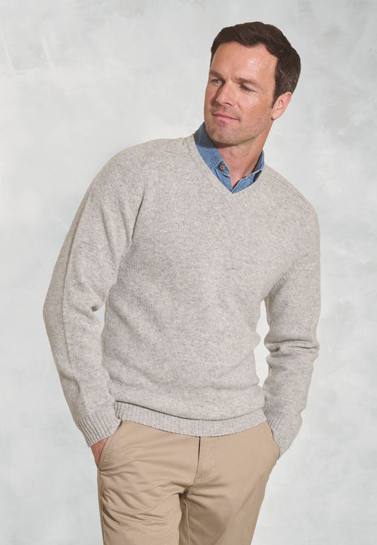Brook Taverner Barton Winter White Lambswool V-Neck Jumper