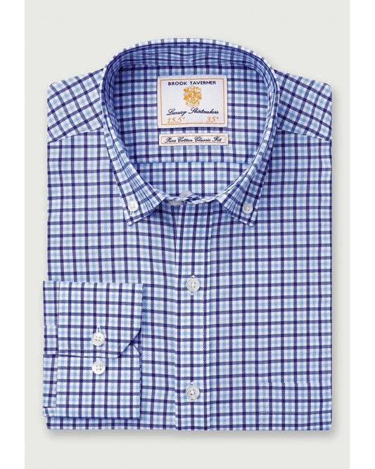 Brook Taverner Regular Fit Navy Check Cotton Oxford Shirt
