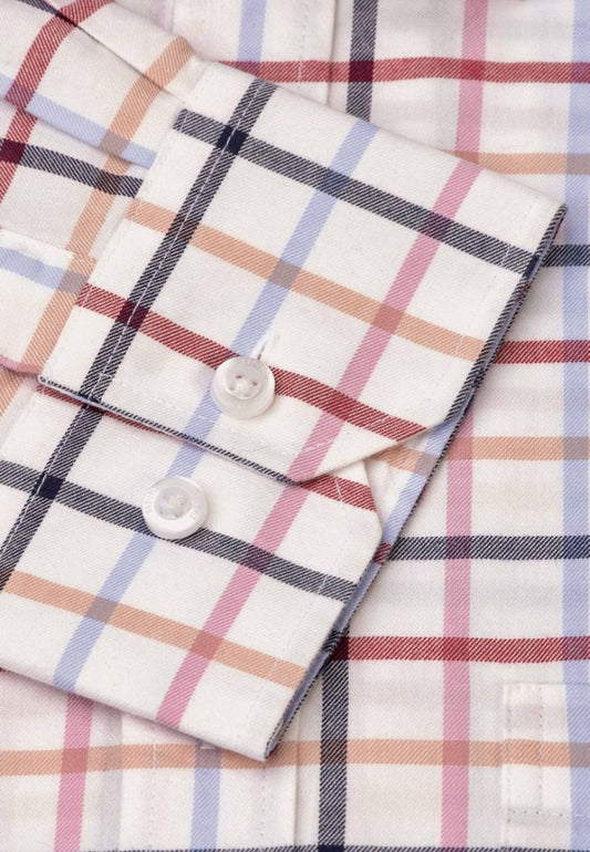 • Regular Fit Ecru Herringbone Check Brushed Cotton Shirt