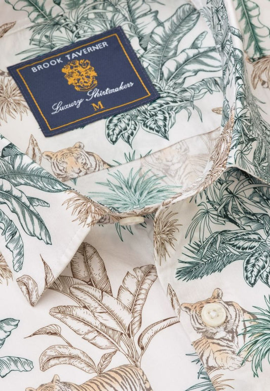 Brook Taverner Regular Fit Ecru Acorn Print Cotton Shirt