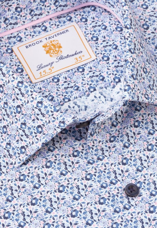 Brook Taverner Regular Fit Blue Ditsy Floral Shirt