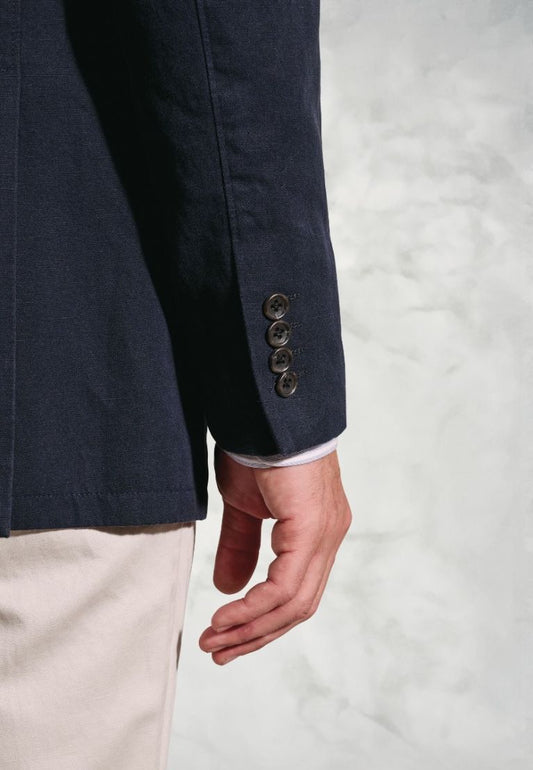 • Tailored Fit Swinburn Navy Puppytooth Wool Blend Jacket
