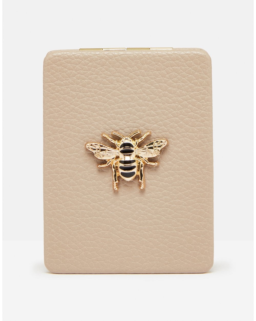 For all beauty junkies of the world, by Alice Wheeler London comes this amazing compact mirror. Featuring twin gold toned metal framed mirrors hinged together with x 1 magnification. Finished in vegan leather incorporating Alice Wheeler signature honey bee insignia, they are a perfect gift; the mirror is housed in a textured box and moulded inner fitment which means they are suitable for posting and out of their box will sit neatly into any Alice Wheeler fashion or beauty bag.