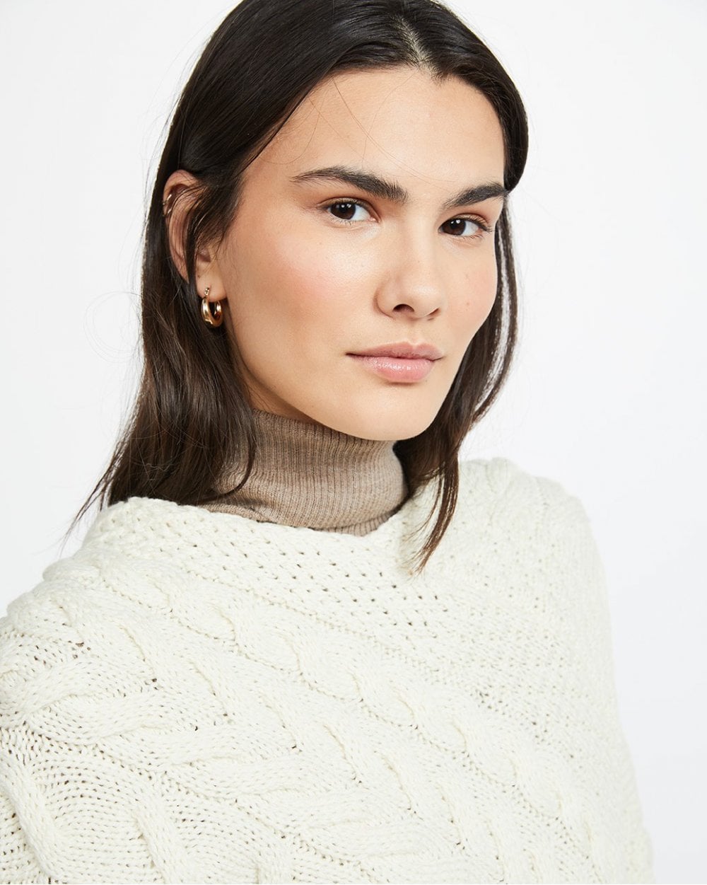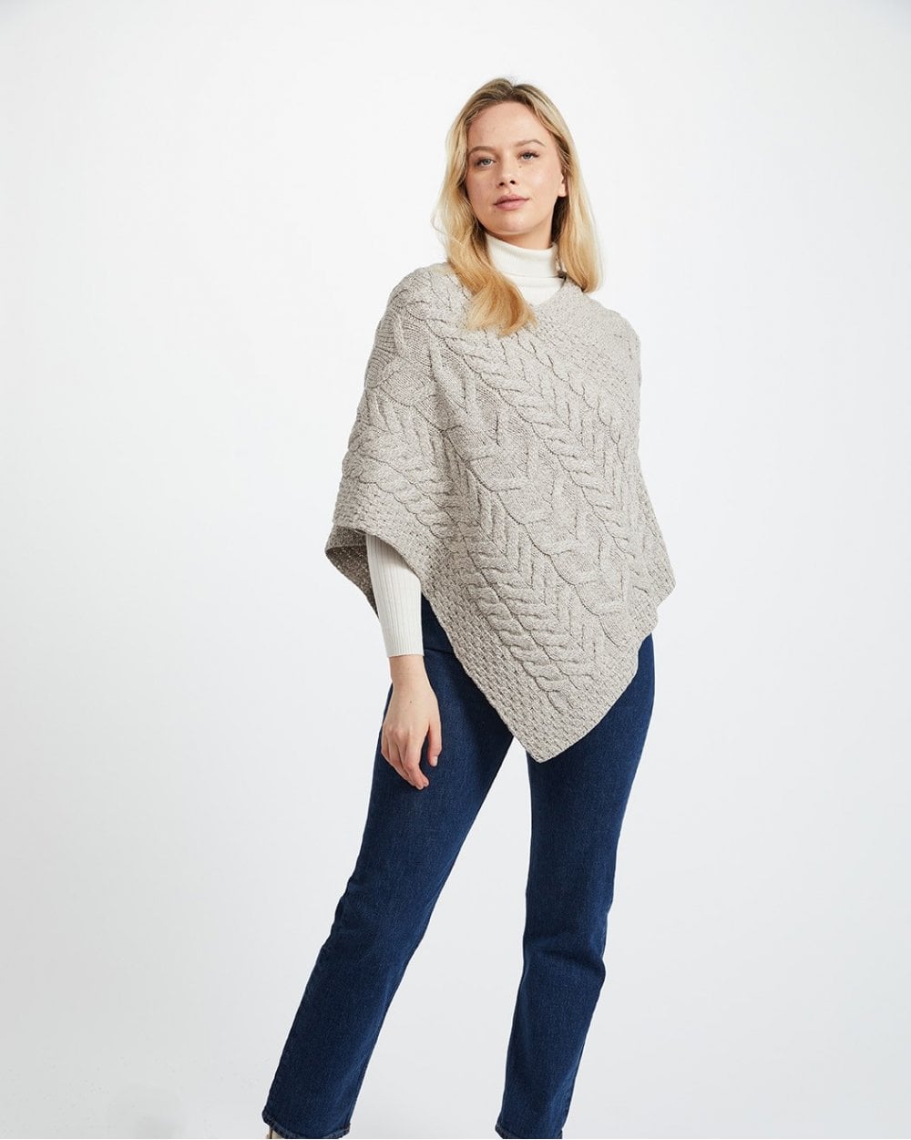 The Aran Woollen Mills Aasleagh Falls Ladies Aran Poncho is a classic traditional Aran knit, designed and crafted using natural yarns and traditional methods in the west of Ireland.
