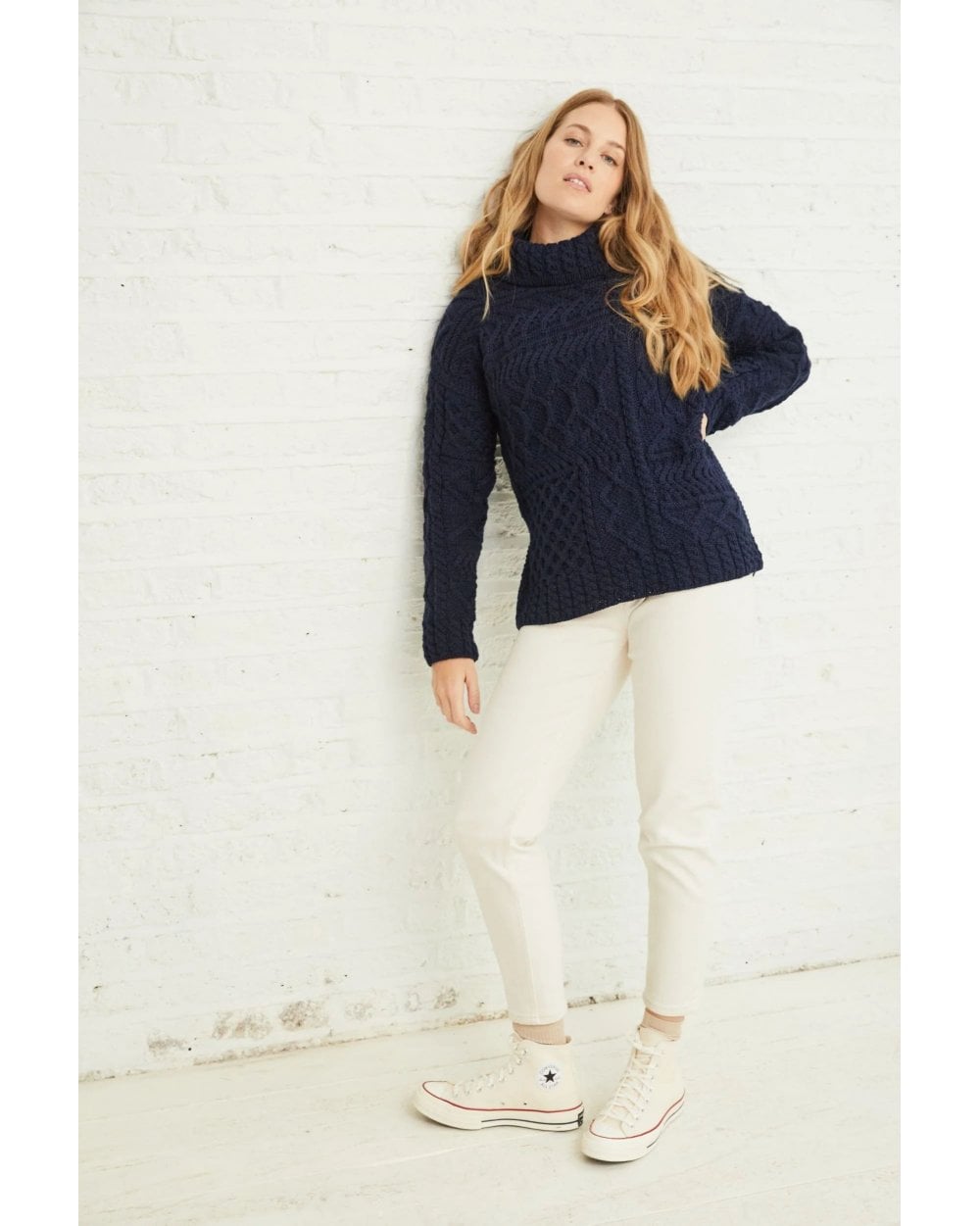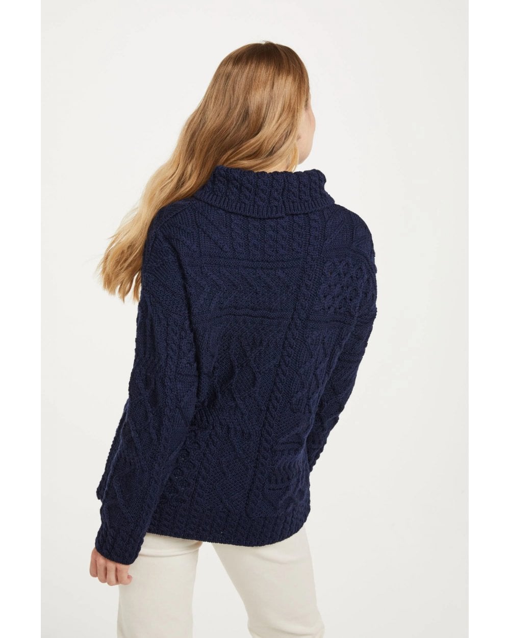 The Aran Woollen Mills Skellig Oversized Aran Sweater captures the birdseye view of Ireland from the skies, bringing a truly mesmerising patchwork design to the table. This 100% Merino piece includes the magic of honeycomb, diamond, zigzag, elongated cable and moss stitching, making it a true celebration of Aran heritage.