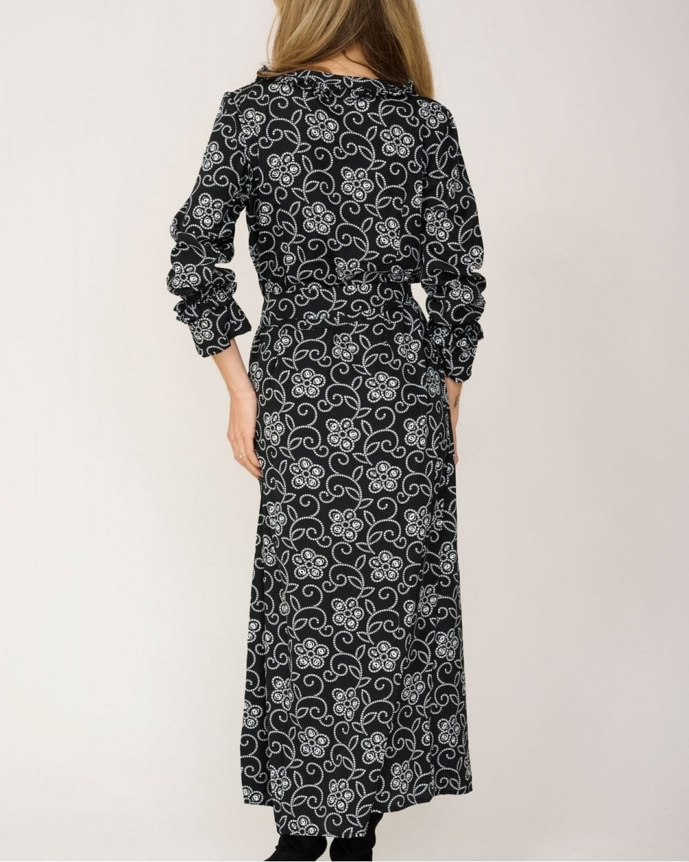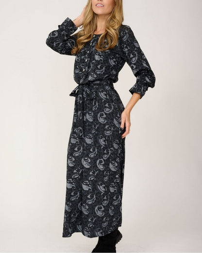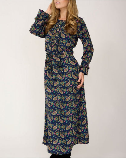 This flattering Meg dress from At Last dress is perfect for the transitional months. Cut to a fashionable midi length, it features tie waist detailing to create the perfect silhouette, long sleeves with frill detailing at the cuffs and finished a ruffle buttoned placket. Created from beautifully soft faux silk, it falls effortlessly down the body, for a sophisticated feminine style.