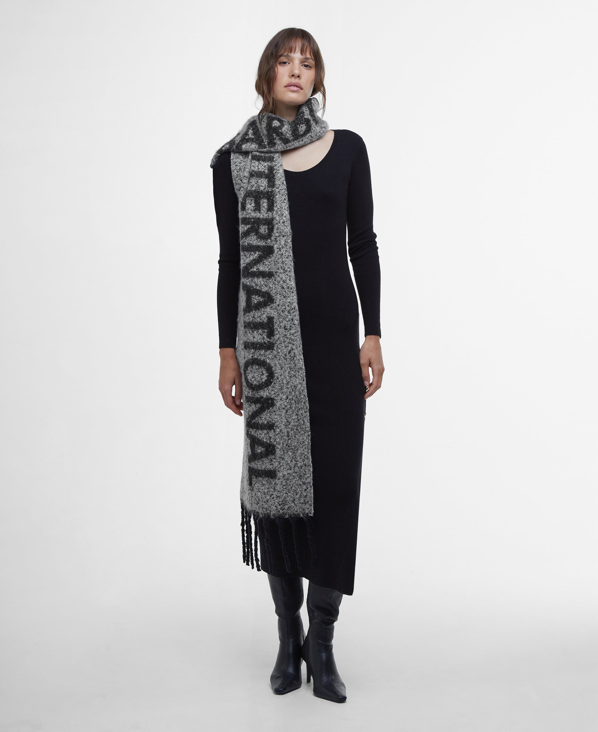 If you're looking to make a statement with your outfit, the B.Intl Kinghorn Logo Jacquard Scarf is the perfect way to do so. This felt-effect scarf is detailed with a bold rendition of the Barbour International logo with oversized twisted tassel hems for a commanding finish. Simply wrap, throw or bundle into this cosy design for irremissible warmth that never compromises on style.