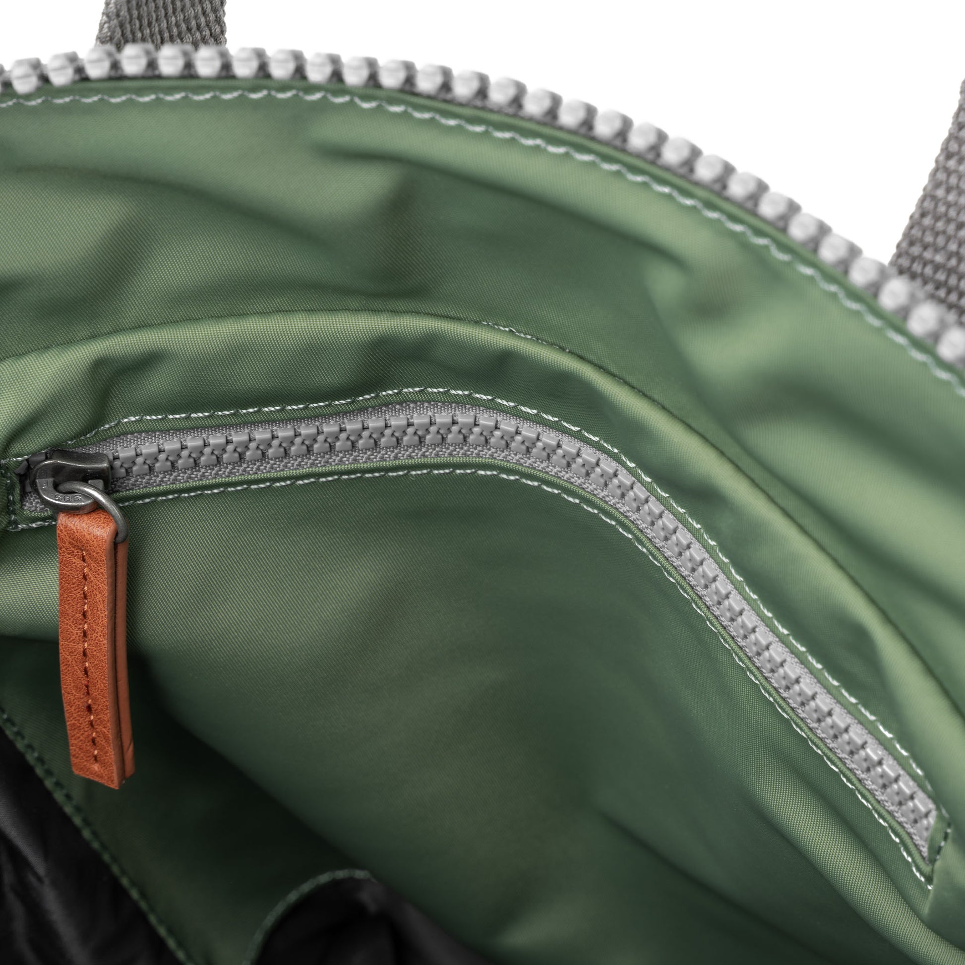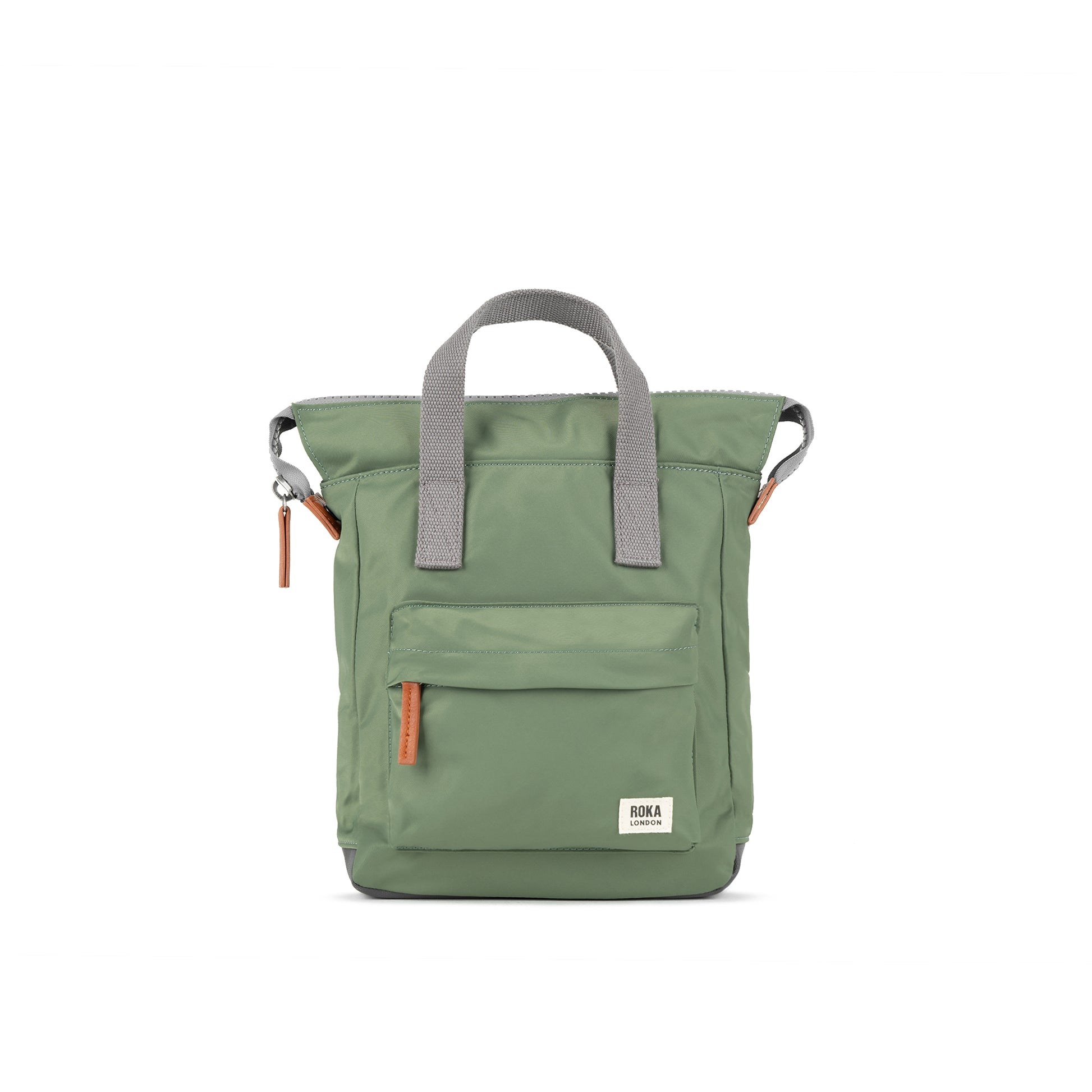 The Bantry comes in both Recycled Canvas and Recycled Nylon options. The Nylon has a shiny look and smooth feel, and the Canvas has a textured look and matte feel. See our Sustainability tab below for more information.