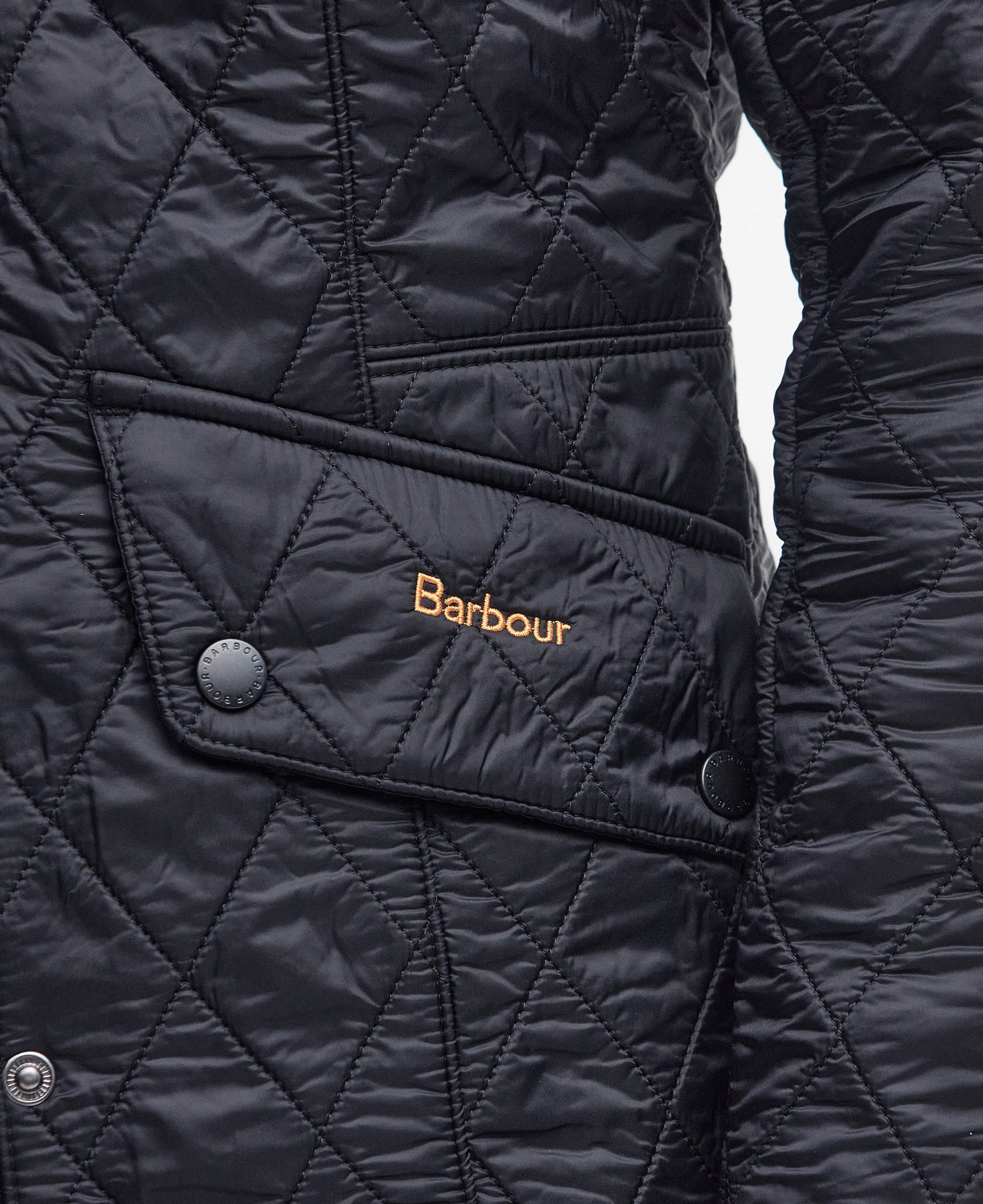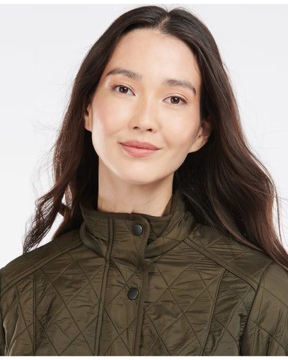 The Barbour Cavalry Polarquilt Jacket takes inspiration from traditional equestrian attire, combining style and practicality. This flattering quilted jacket is fully lined with cosy polar fleece for added warmth. It features a functional elasticated waist panel, shaped hem and rushed back. A sturdy two way zip, stud fastenings and generous front pockets provide the finishing touches to this timeless jacket.