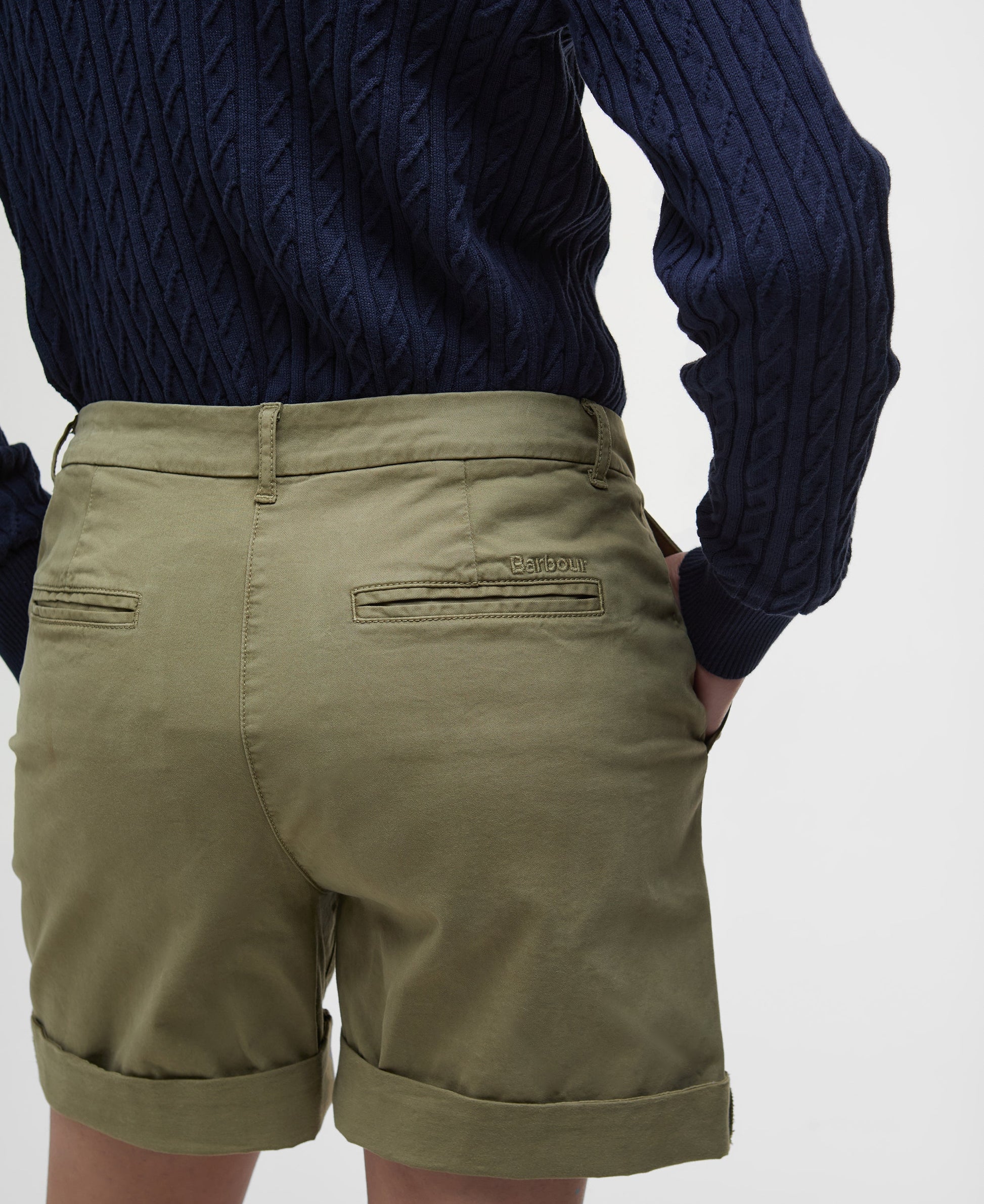 Four pocket chino short with Barbour embrodery at centre pack and branded shank button to waistband.