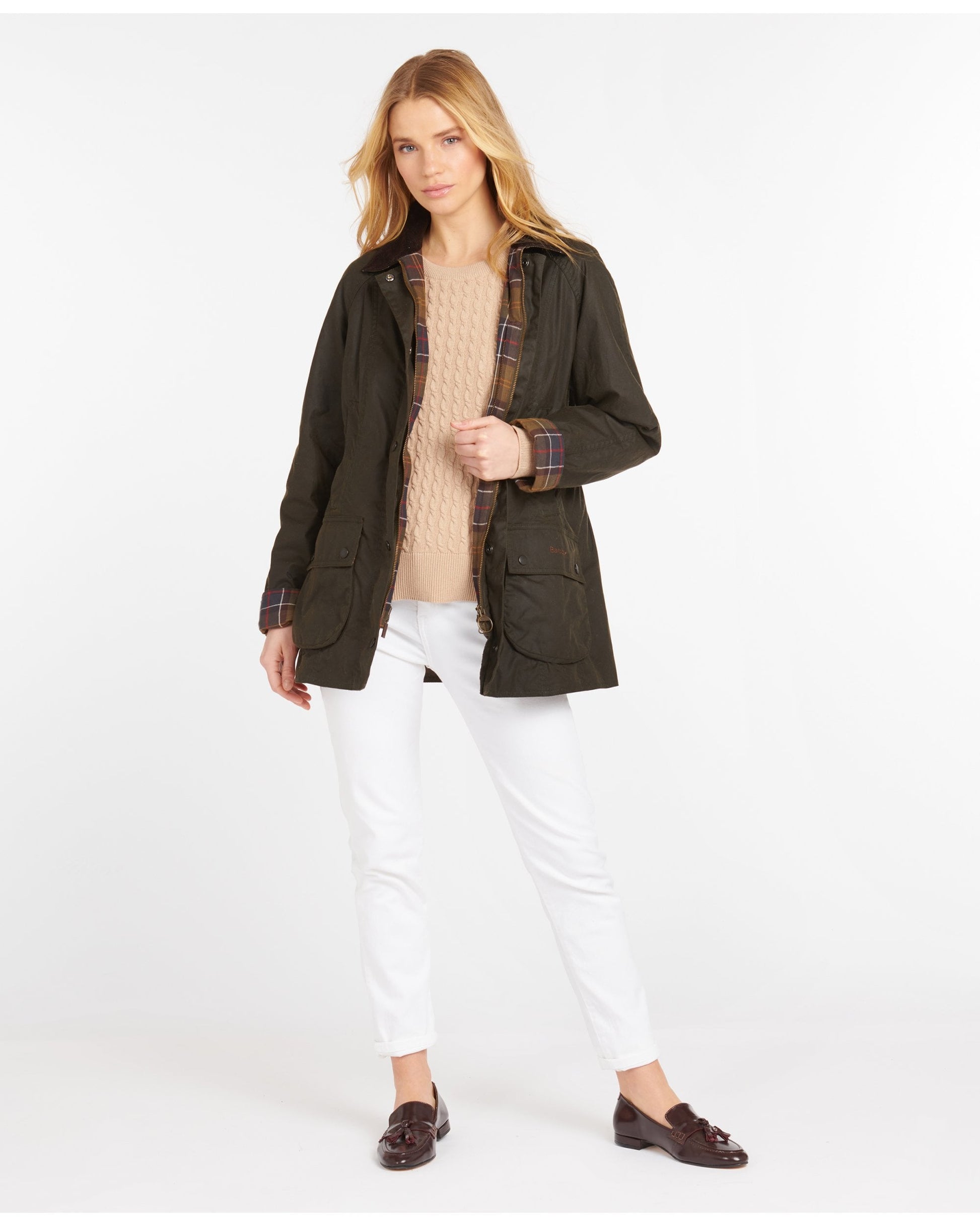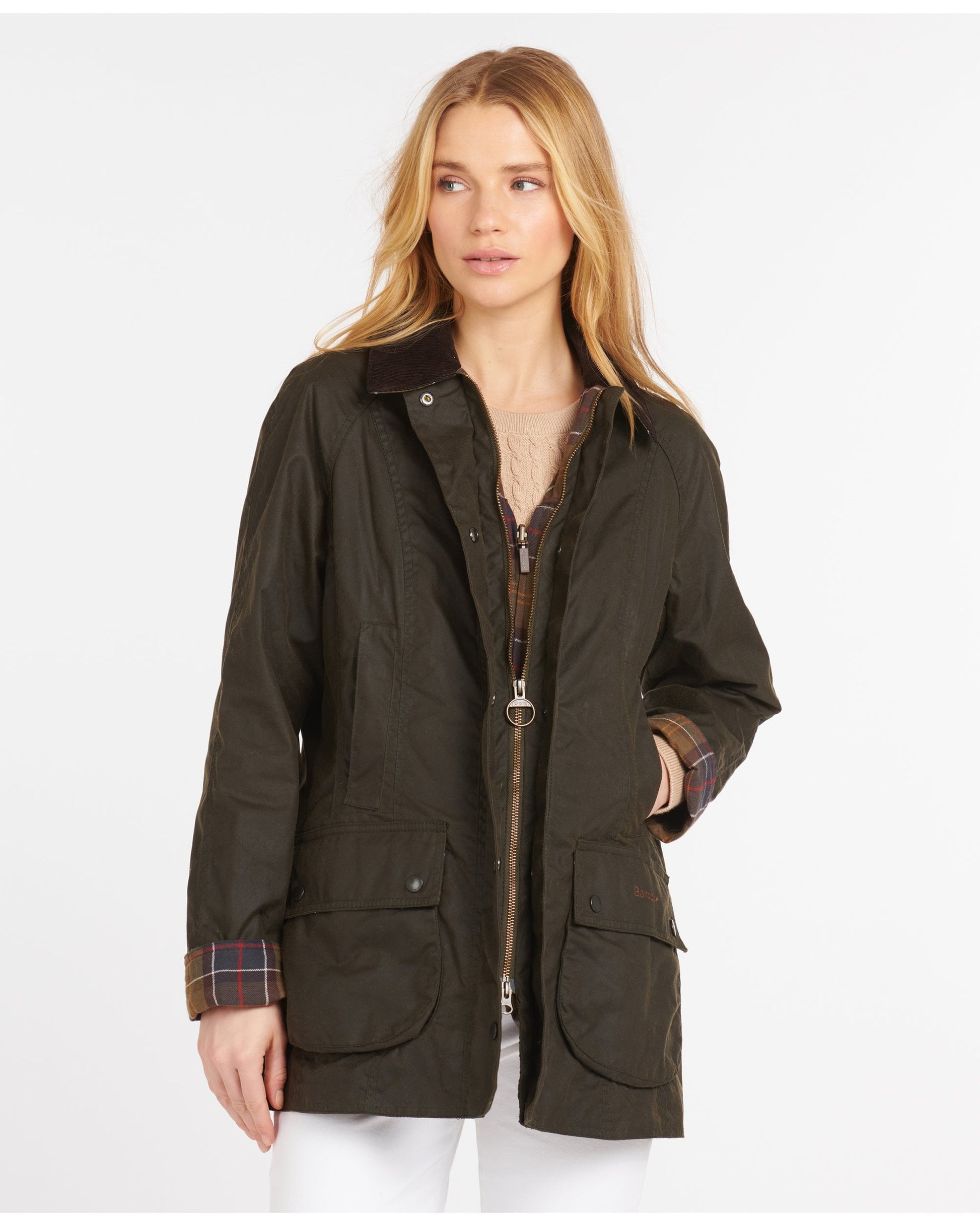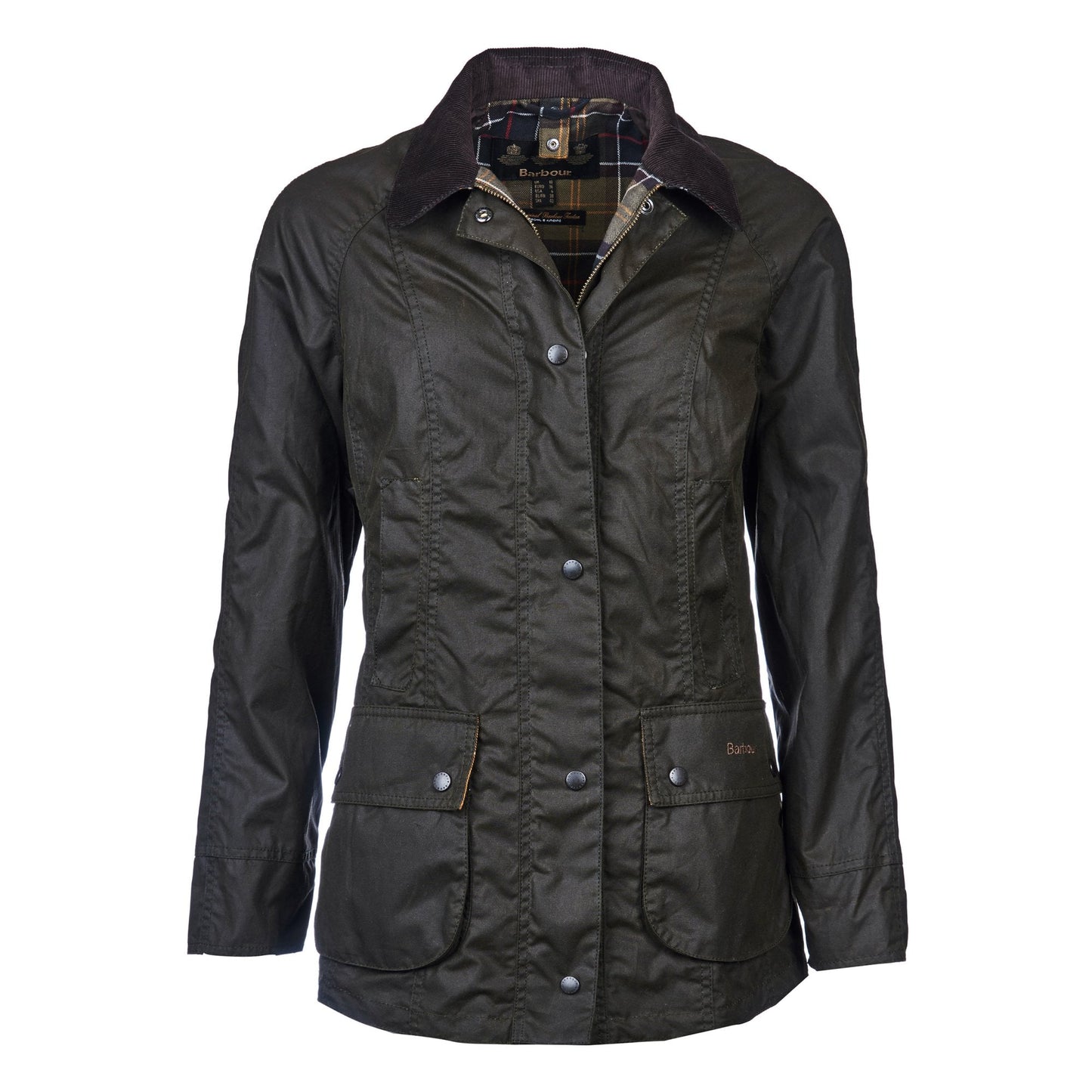 The classic Beadnell jacket is one of Barbour's most iconic women's jackets, constructed from the traditional Sylkoil wax, known for its durability and water-resistant properties. This flattering jacket features a fold-down cord collar and contrast tartan lining to provide the classic Barbour style that we all know and love. Finished with two large bellows pockets to keep your essentials close, this versatile and practical jacket is perfect for long walks in the countryside. This hard-working wardrobe staple is sure to be a jacket that you will reach for time and time again.
