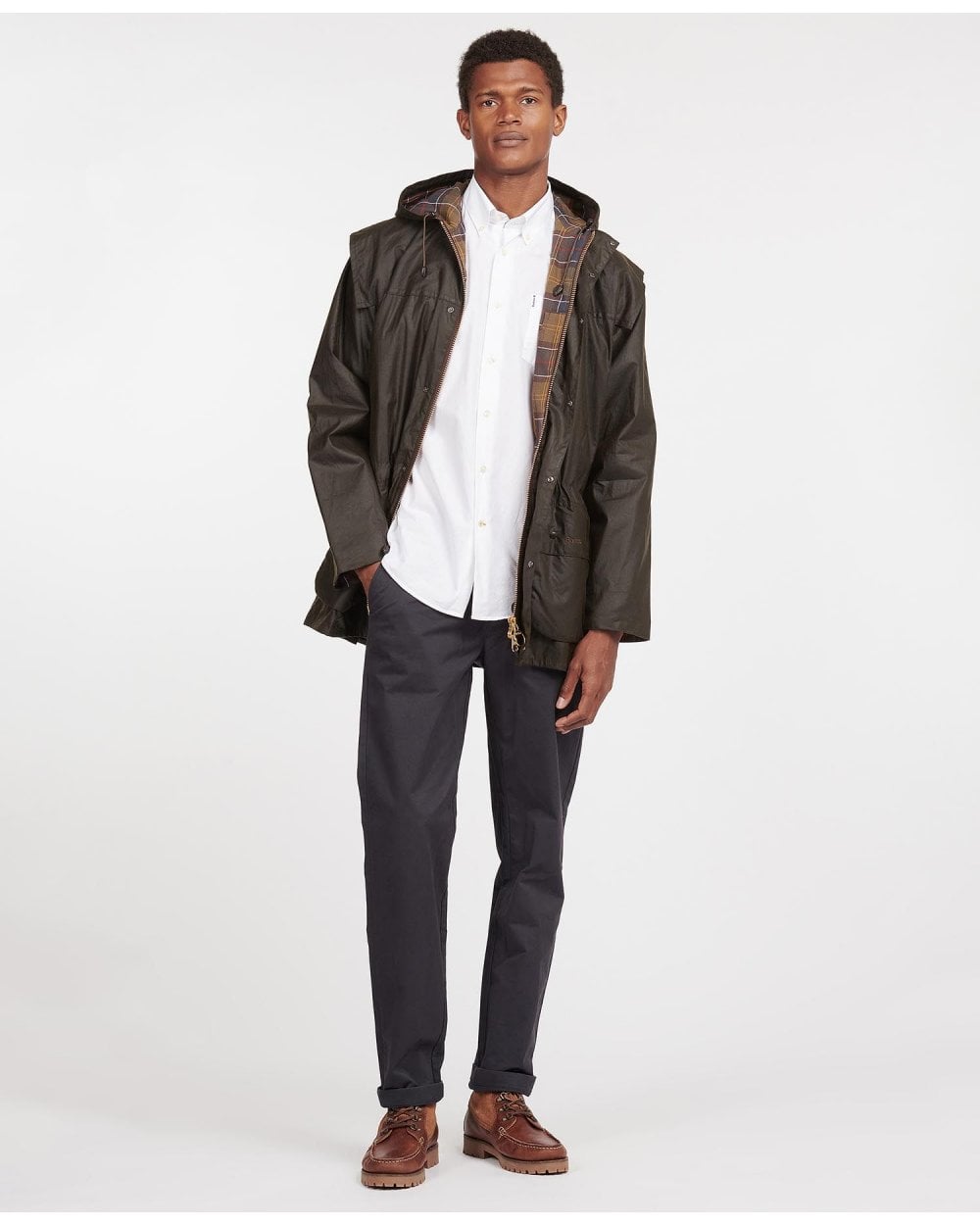 Part of the Barbour Men's Classic Collection this Durham Waxed Jacket truly is an iconic example of Barbour style and practicality. Popular all year round, it is made from 4oz Sylkoil wax, for lightweight protection from the elements. Cut in a relaxed style this is perfect for ease of movement during outdoor activities. Detailed with a two-way zip, drawcord waist, large hood and iconic cape detail. Lined with Barbour's classic tartan to add an extra stylish element, the Durham Jacket is compatible with Barbour's zip-in liners.