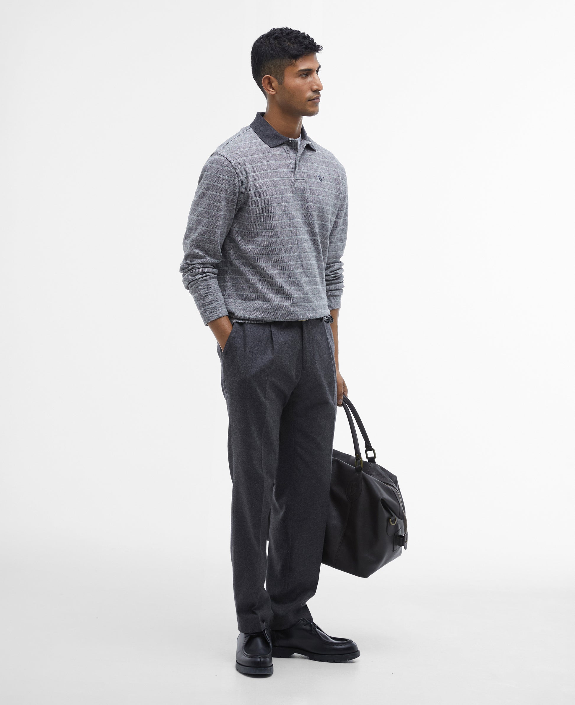 With a focus on rich textures and modern shapes, the Barbour Cleveland Polo Shirt gives a new look to this ever timeless style. Crafted from heavyweight cotton interlock jacquard, this long-sleeved silhouette boasts a textured stripe design with a solid ribbed collar and complementing Barbour Crest logo to the chest.