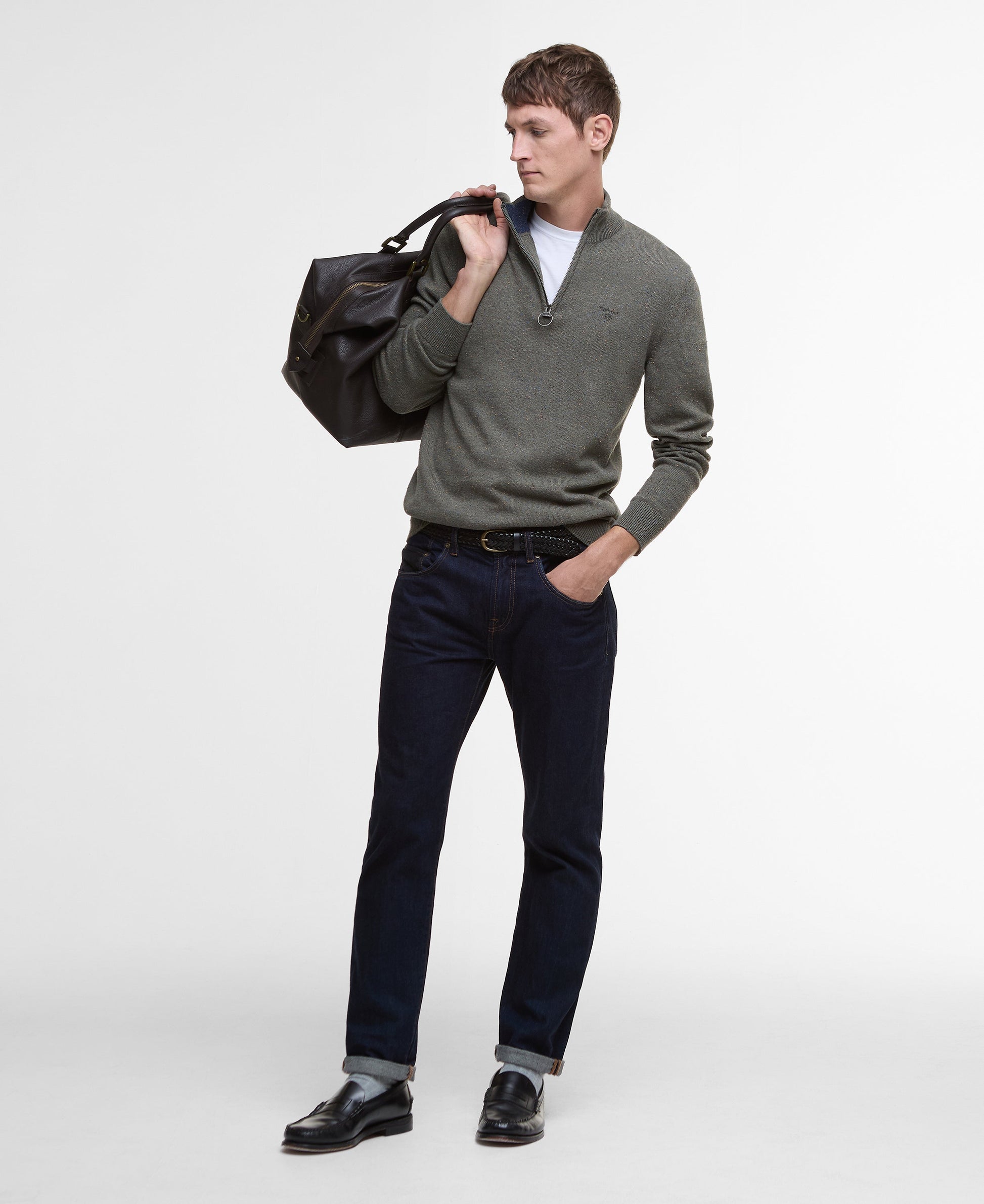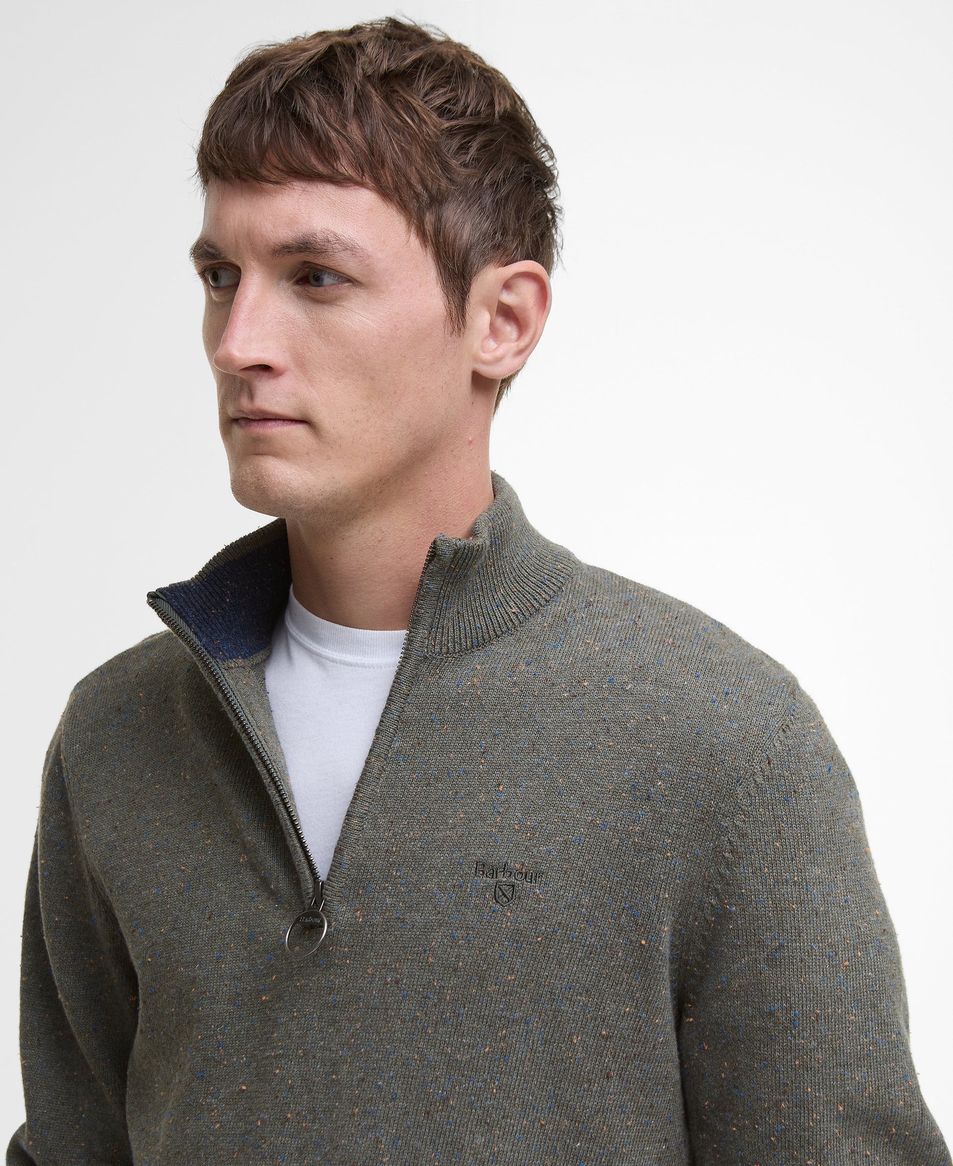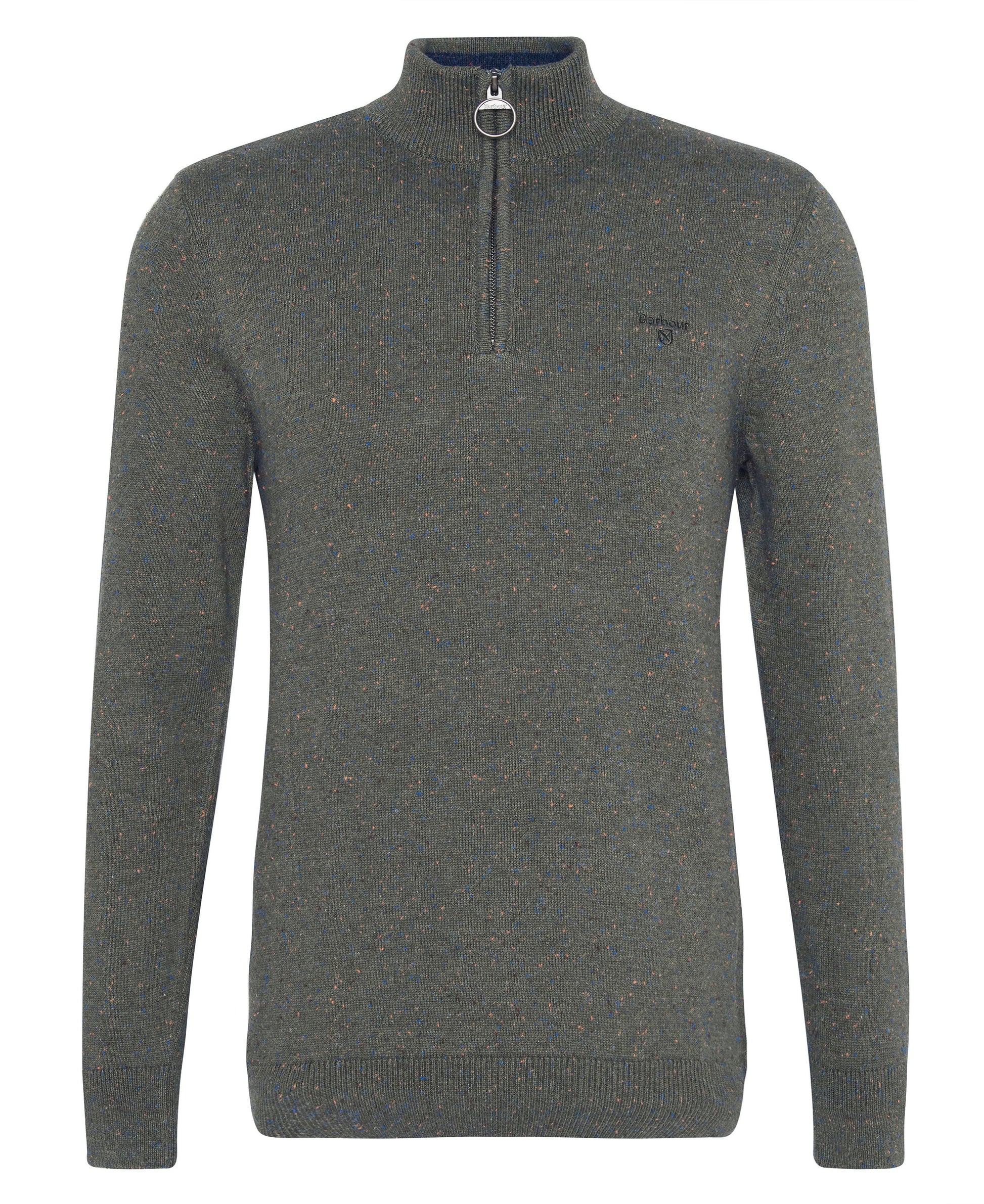 Essential Barbour half zip in a Cotton tweed fleck yarn. Rib collar, cuff and hem.