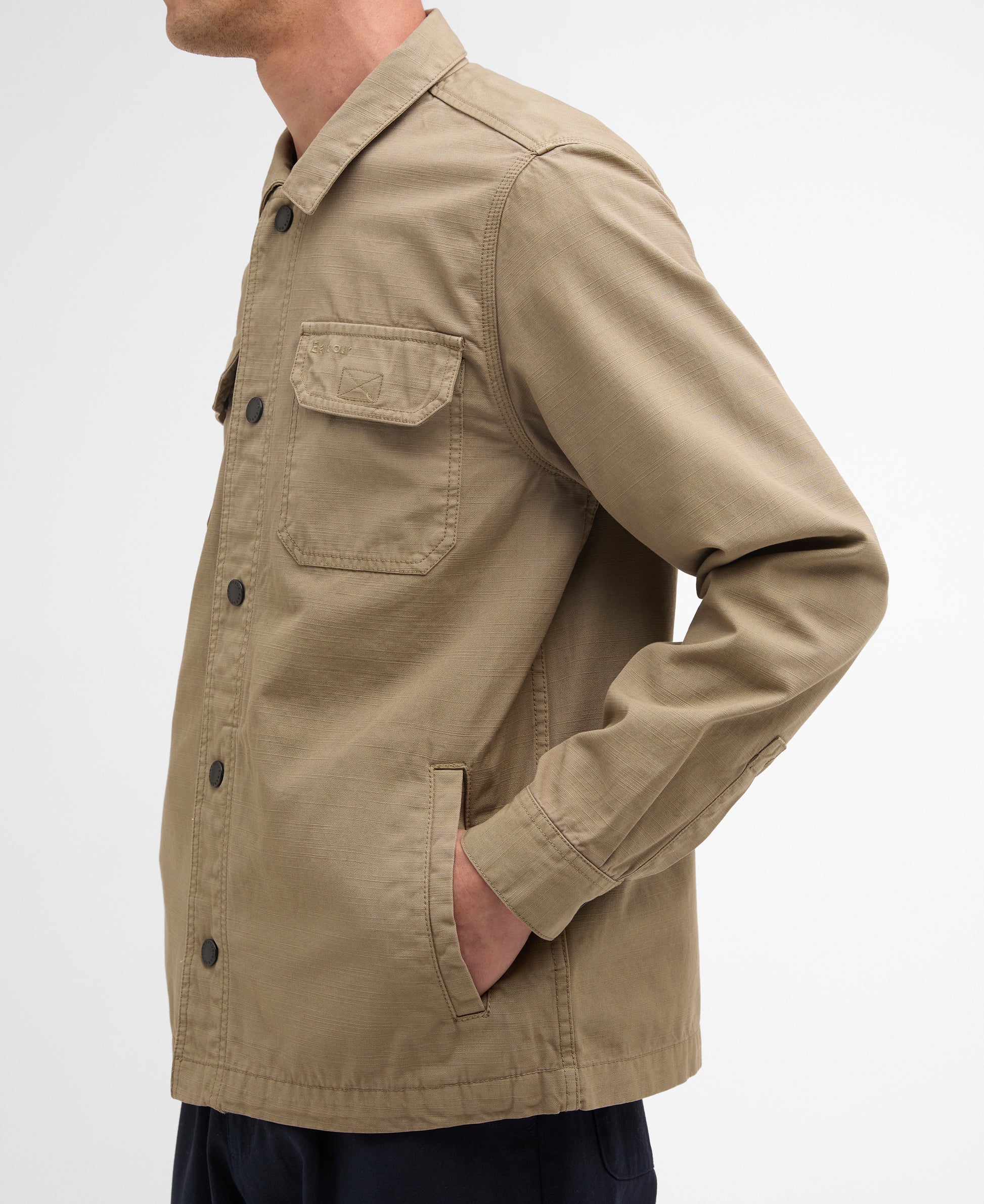 The Barbour Draftmen Cotton Overshirt is a rugged yet refined layer for your everyday wardrobe. Crafted from 100% cotton for a textured feel, this relaxed-fit overshirt features a convenient snap-through front. Utility-inspired details like chest pockets, side-entry welt pockets, and durable triple-stitch detailing throughout combine practicality with a timeless, hard-wearing aesthetic for versatile wear.