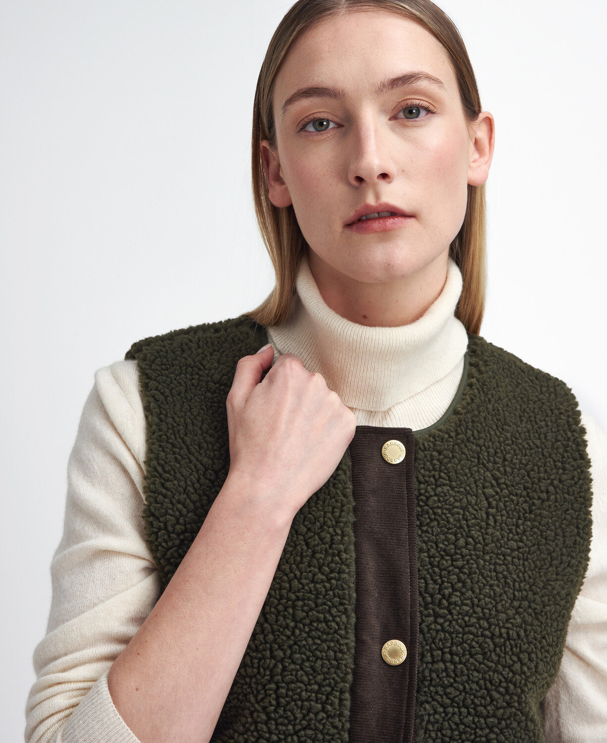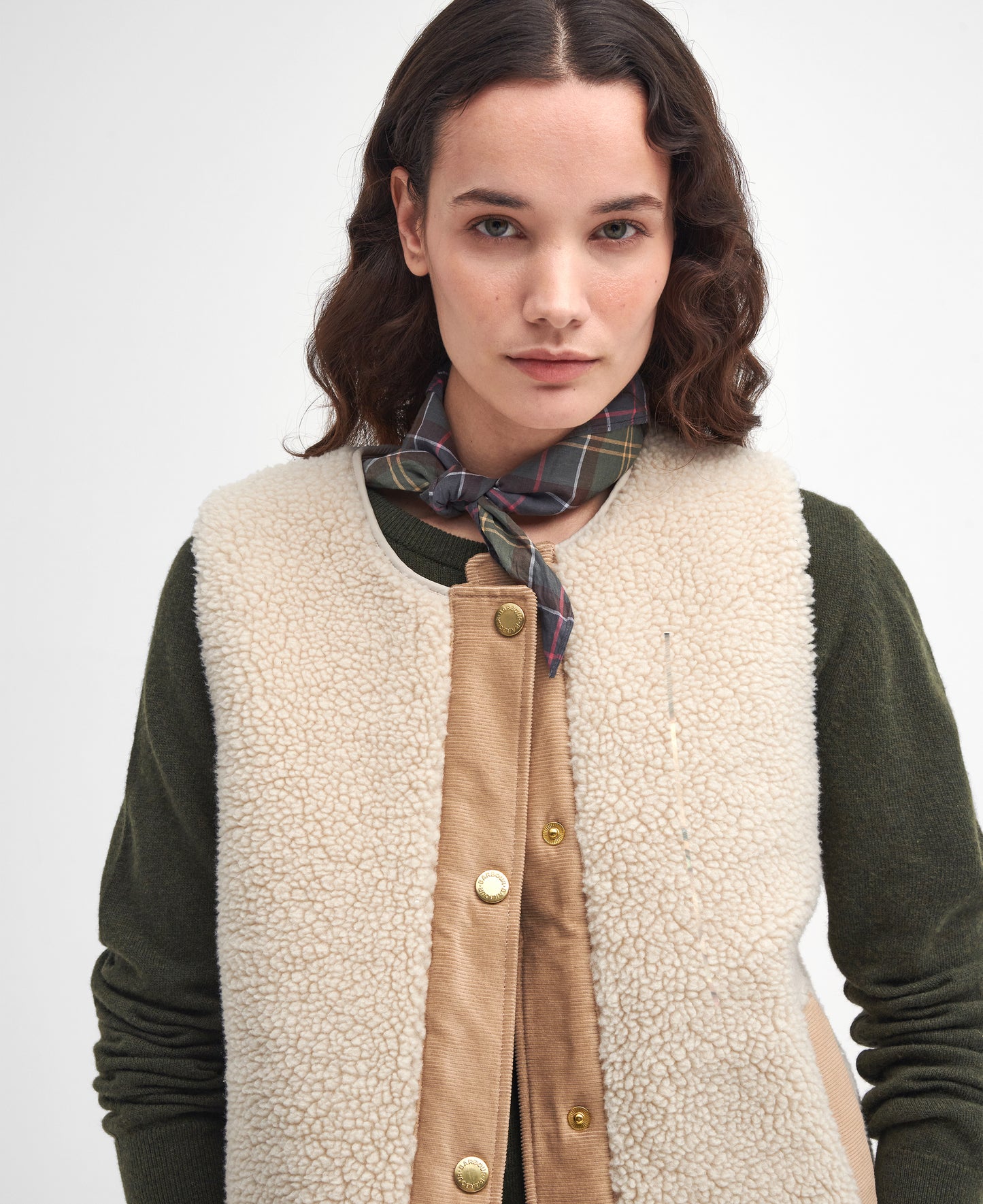Whether you're looking for optimal warmth or the ultimate cosy outfit, the Barbour Dulsie Liner is the perfect choice. Crafted from a sumptuously soft teddy fur, this design is perfect for layering over T-shirts and jumpers as the seasons change and pairing under jackets for added warmth, thanks to its discreet collarless design.