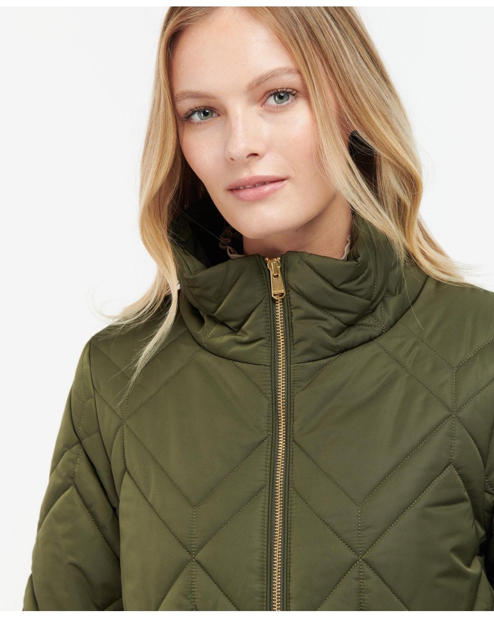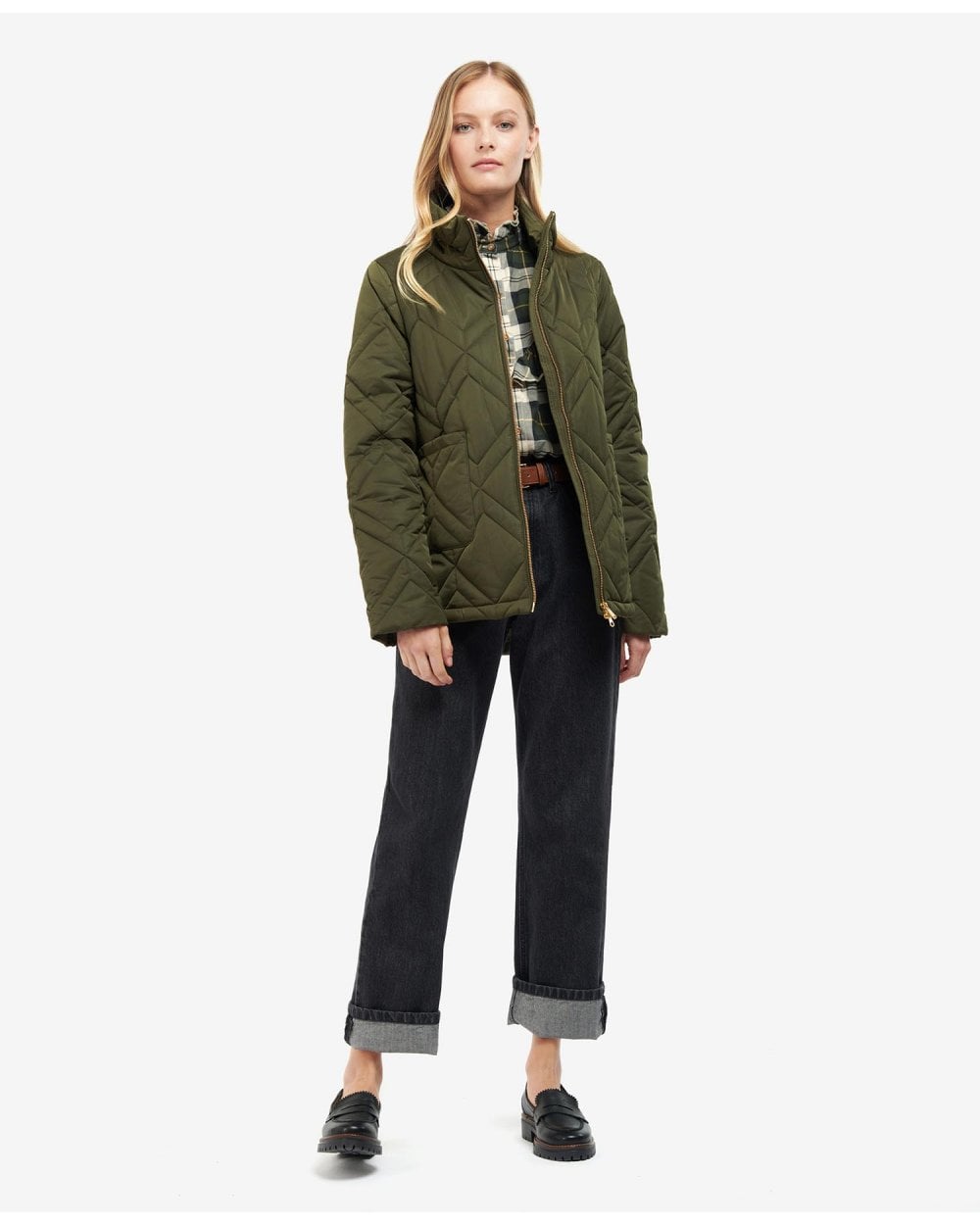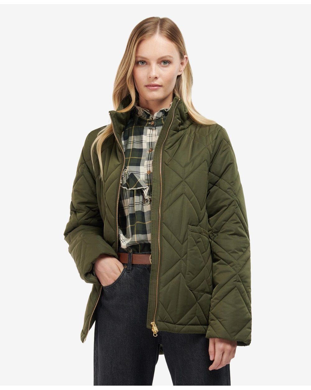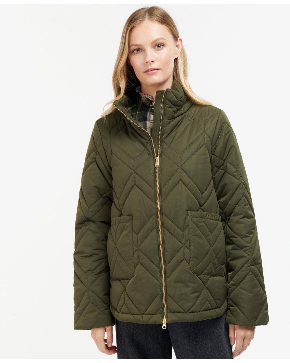 The Barbour Elin Quilted Jacket is cut to a shorter length design with an all over diamond quilting. Showcasing an exposed metal two way zip and large patch pocket, this garment exudes premium style while retaining essential functionality. A tartan back neck buggy and branded embroidery on the left pocket effortlessly finishes the garment.