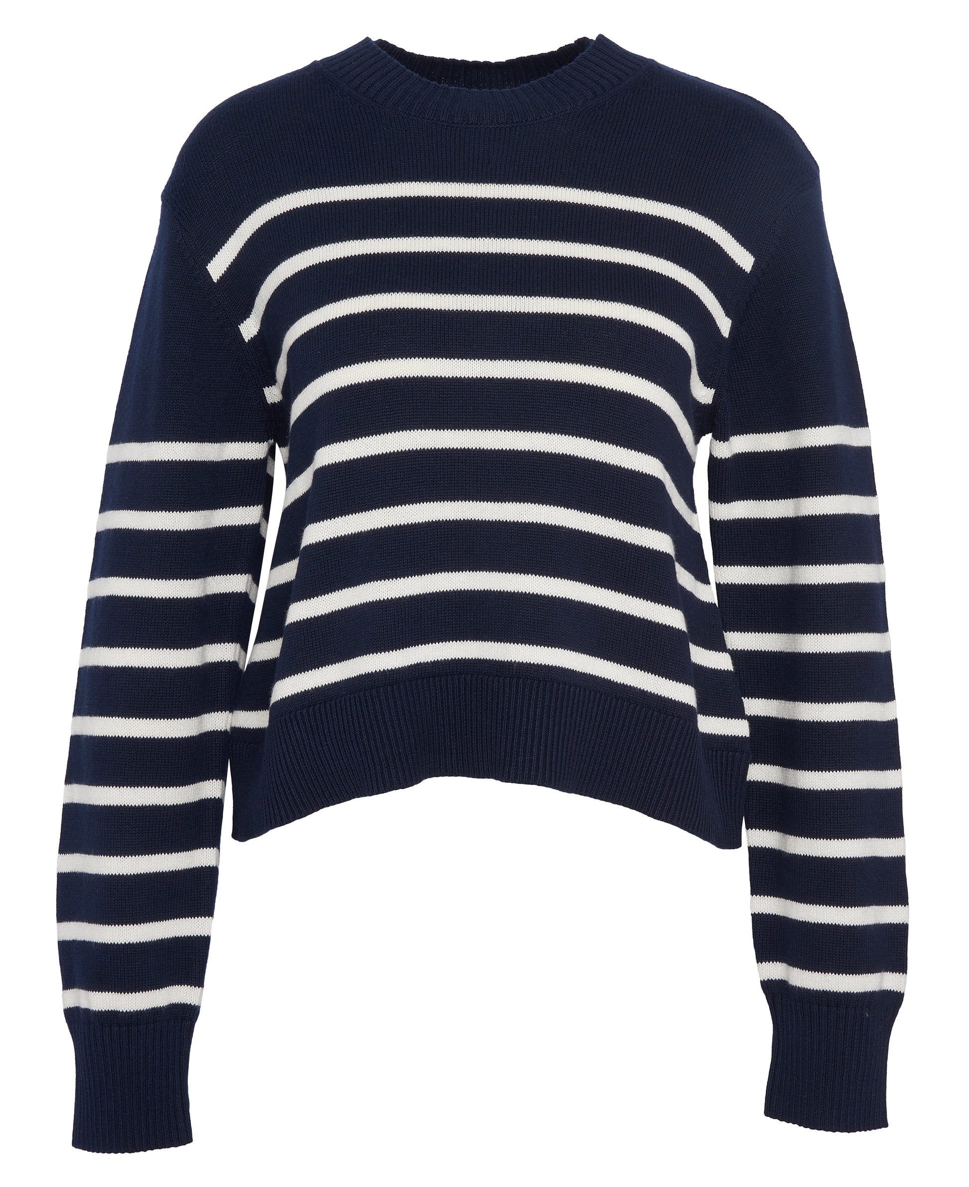 Introducing classic prints in contemporary ways, the Barbour Emery Striped Crew Neck Jumper is nothing short of a staple for the transitional months. Crafted from a premium cotton-cashmere blend, this crew neck jumper is perfect for layering. While the print, at first, may seem bold, it's perfect for styling with tailored trousers for a smart-casual pairing.