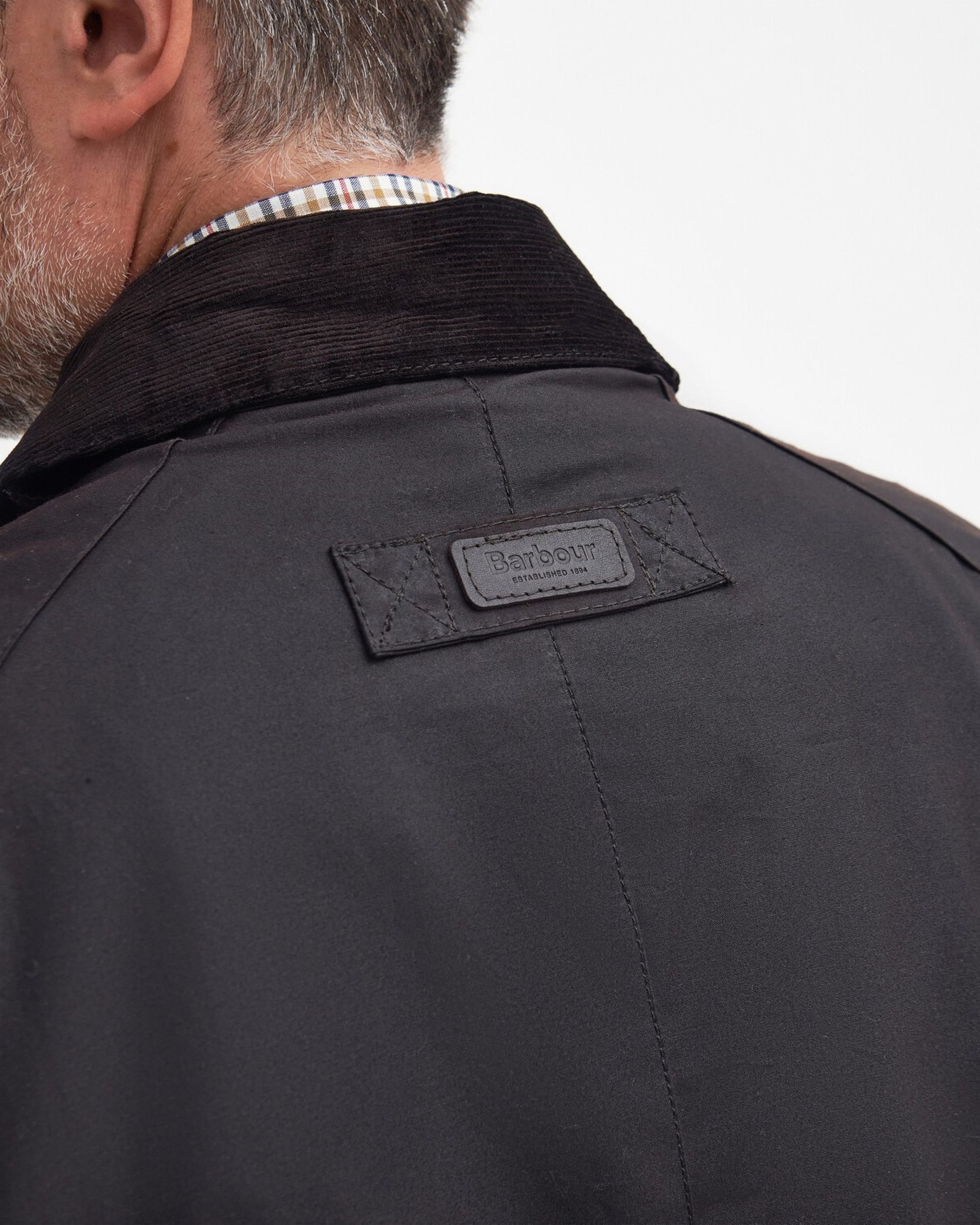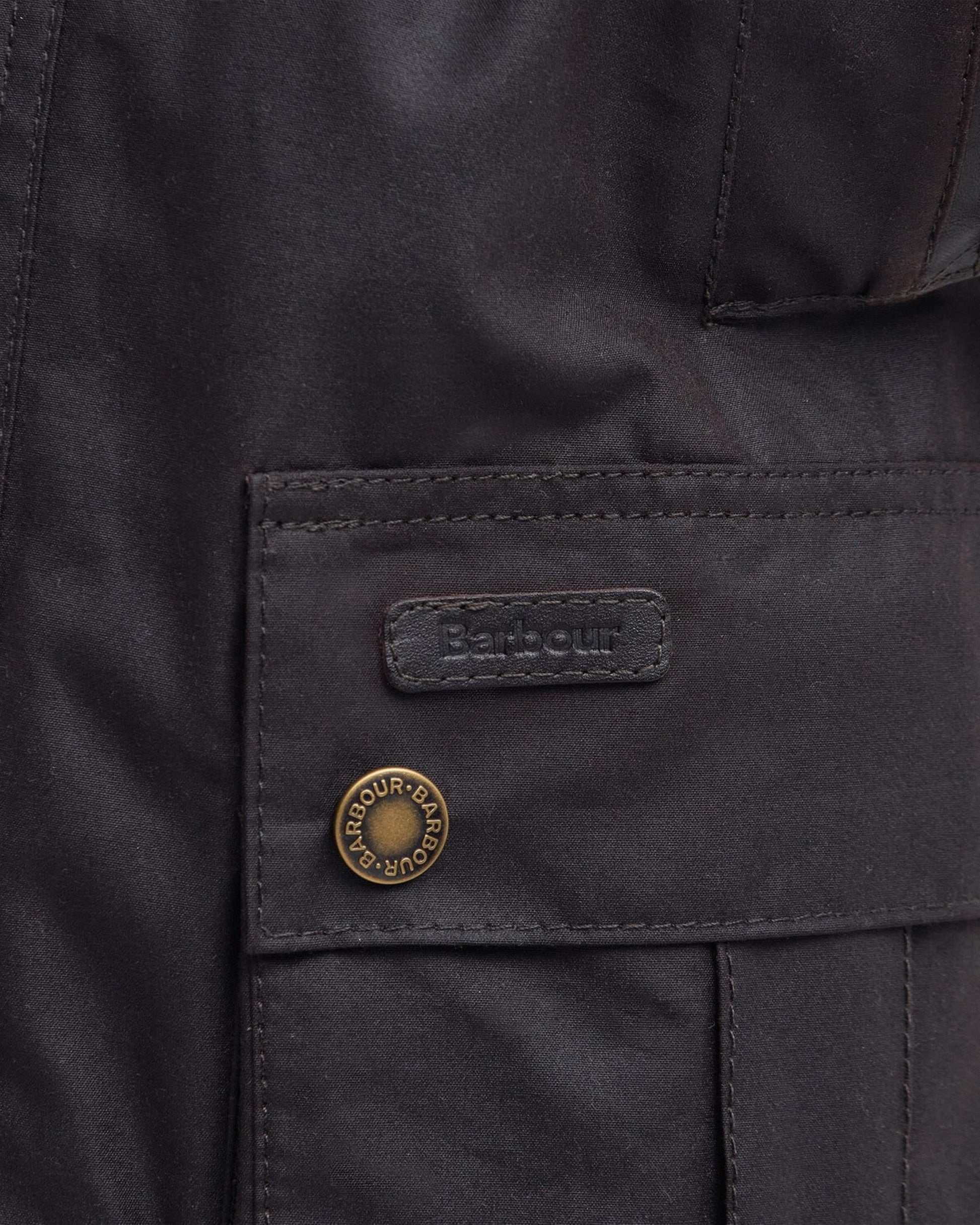 - Outer: 100% cotton (waxed); inner: 100% cotton; yoke: 97% cotton, 3% elastane; dripstrip: 100% polyester; collar: 100% cotton