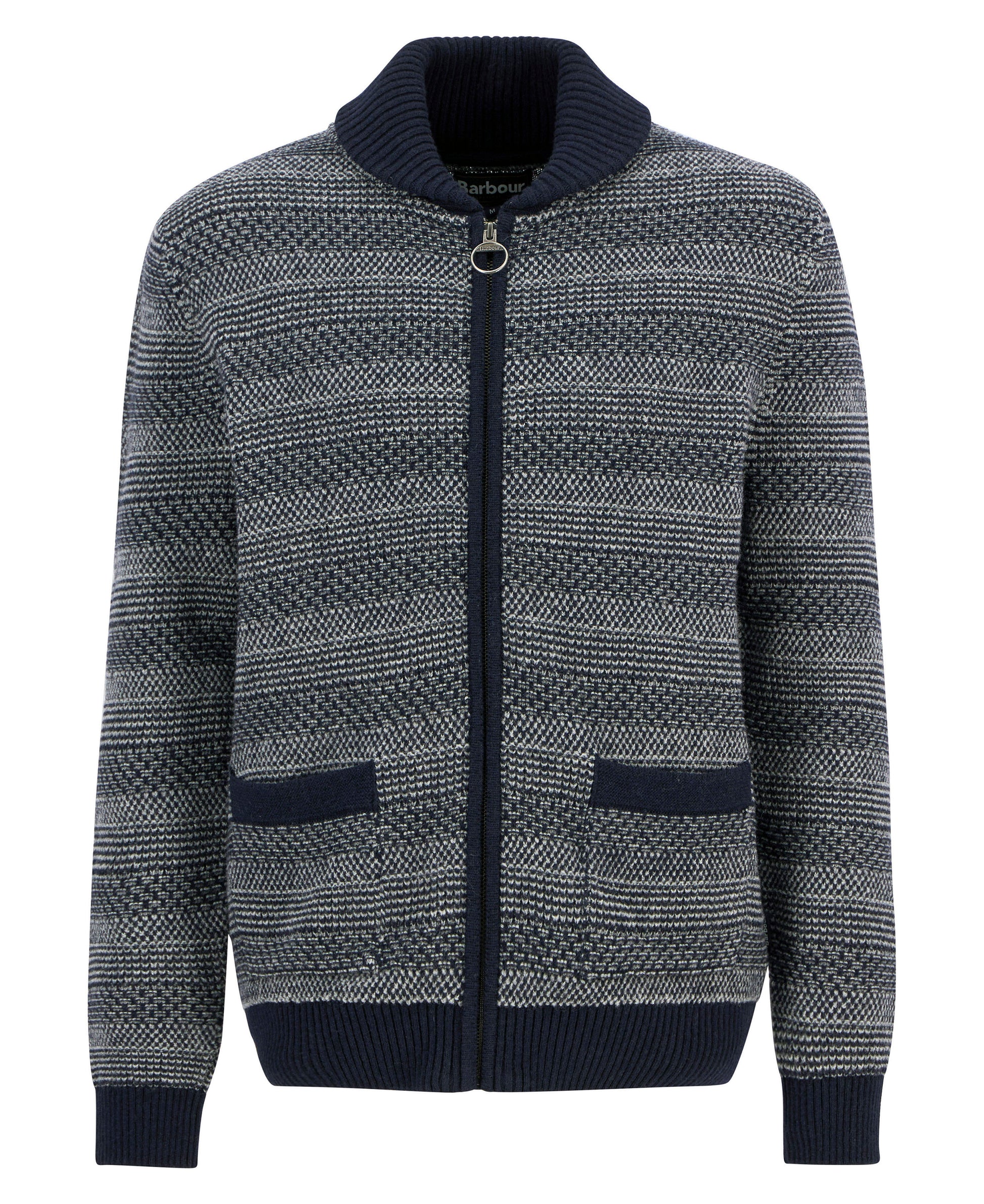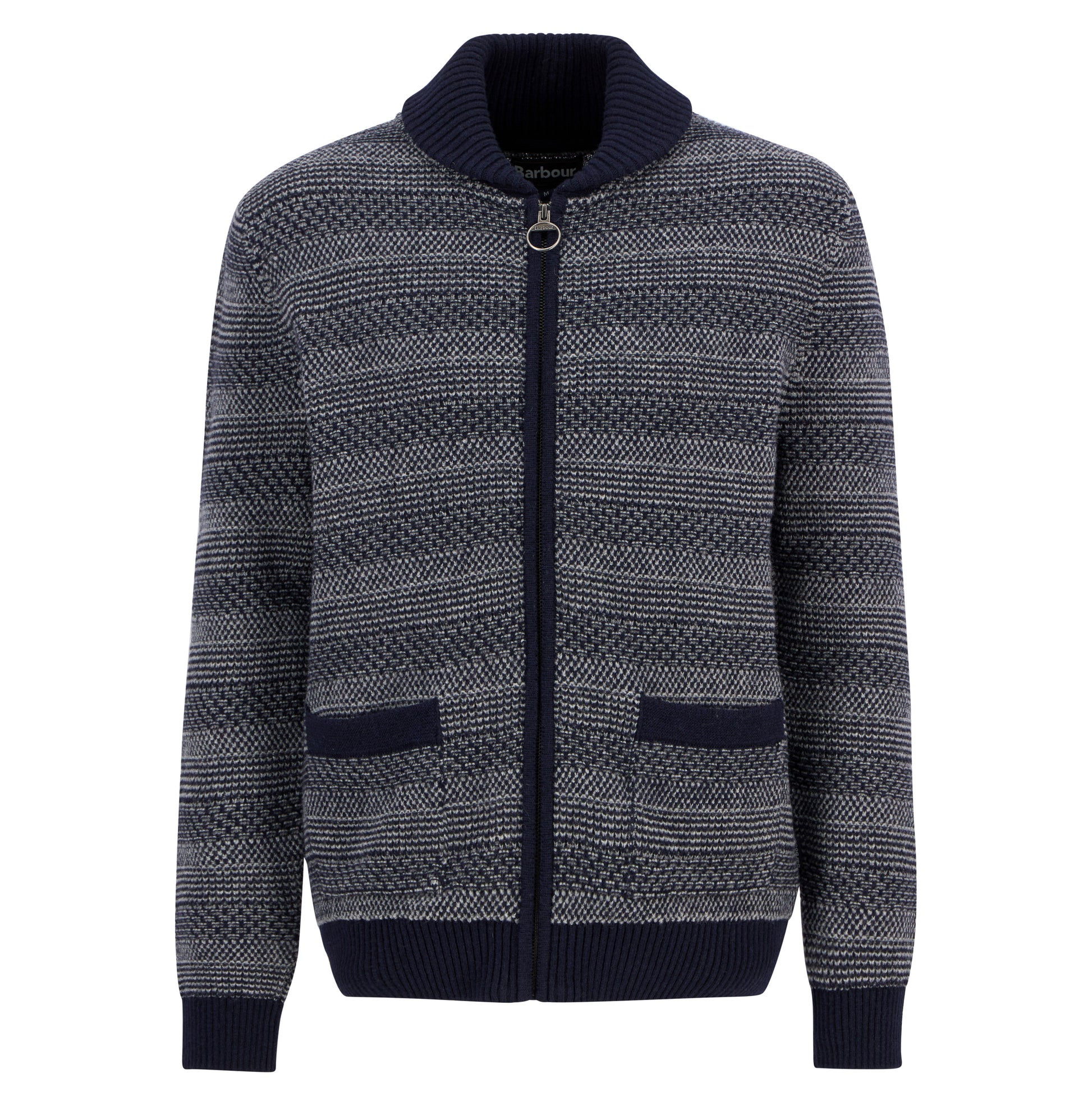 Perfect for cooler days, this knitted cardigan is made from 100% wool. Wrap yourself in warmth with the Barbour Helmsley Knitted Cardigan. Crafted from 100% wool, it features a regular fit, a distinctive two-tone pattern and a zip-through fastening. The two front pockets and shawl neck collar add practicality and timeless charm.