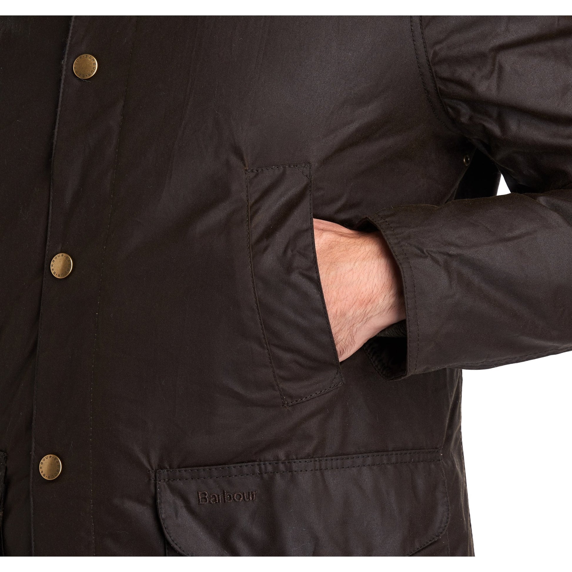 Perfect for adding a touch of countryside style to your wardrobe this winter is the Barbour Men's Hereford Waxed Jacket. Classic in style this iconic men's jacket truly shows the style and versatility of Barbour jackets. Traditional Barbour details such as a cord collar and patch pockets have been mixed with a more modern leather trim. Quilting lining adds an extra layer of warmth, perfect for cold winter days.