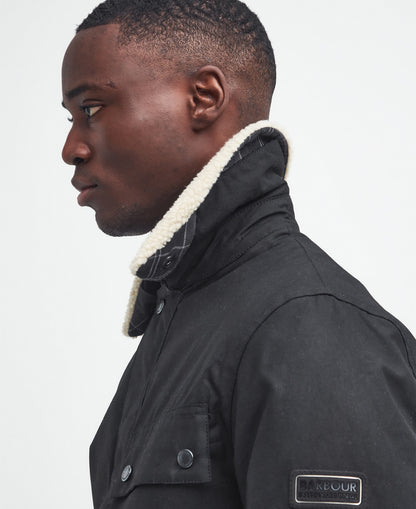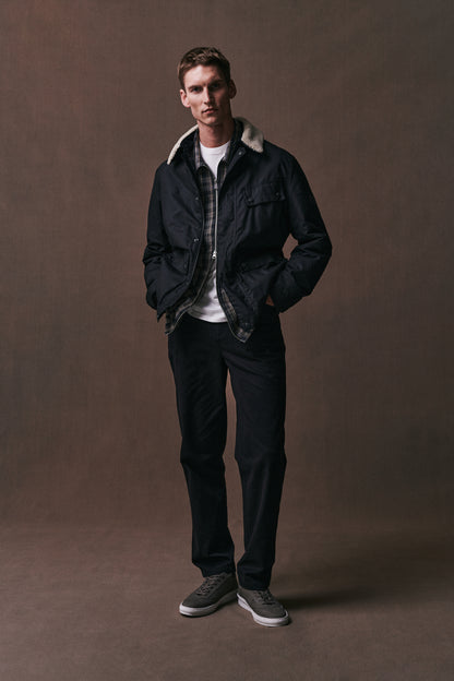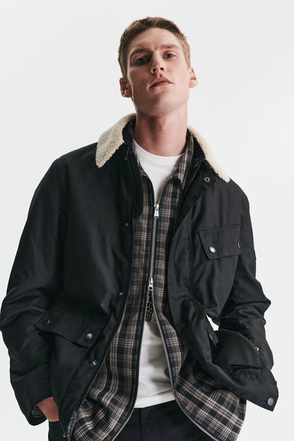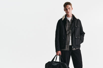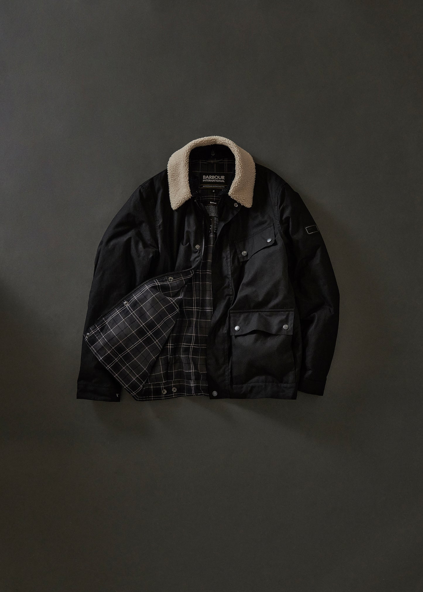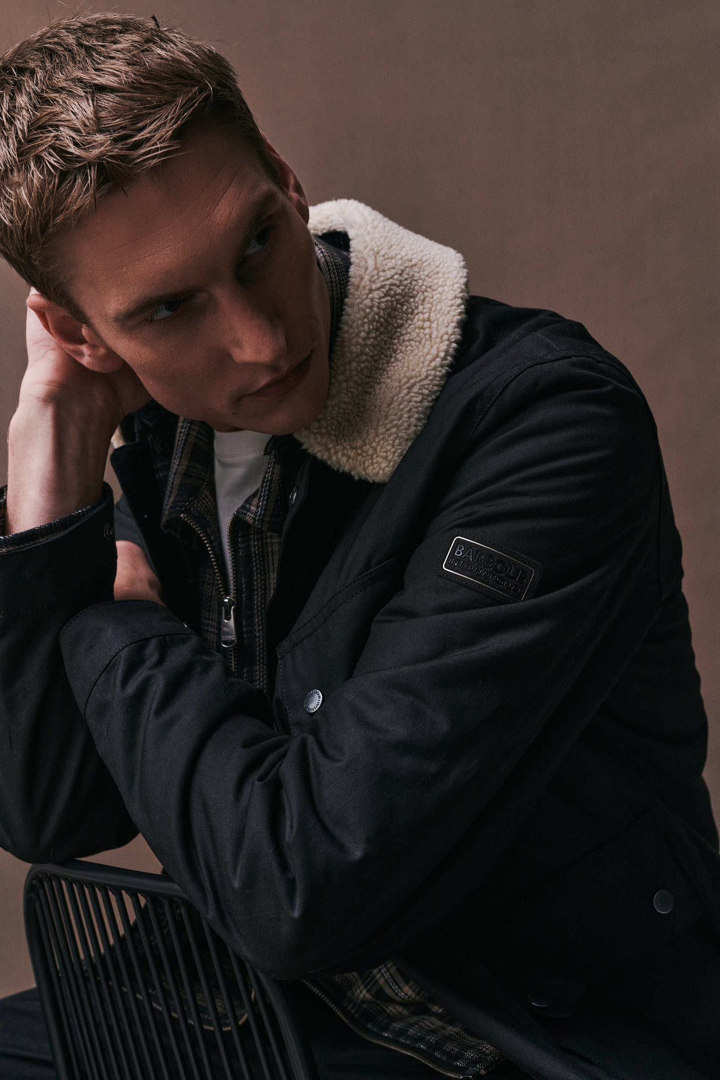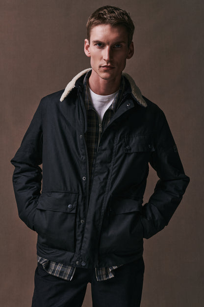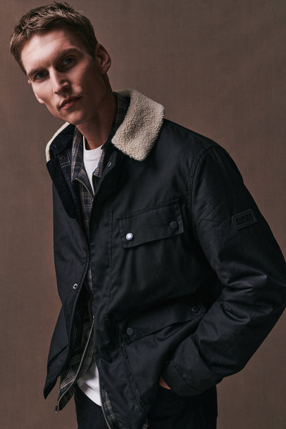 Taking our classic waxed cotton outerwear to new levels, the B.Intl Coppice Waxed Jacket gives our timeless jackets a modern profile. Contemporary updates include an angular patch pocket to the chest for an offbeat finish and dark metal hardware. Finished with a detachable berber collar and dual entry pockets, it's perfect for winter wear.