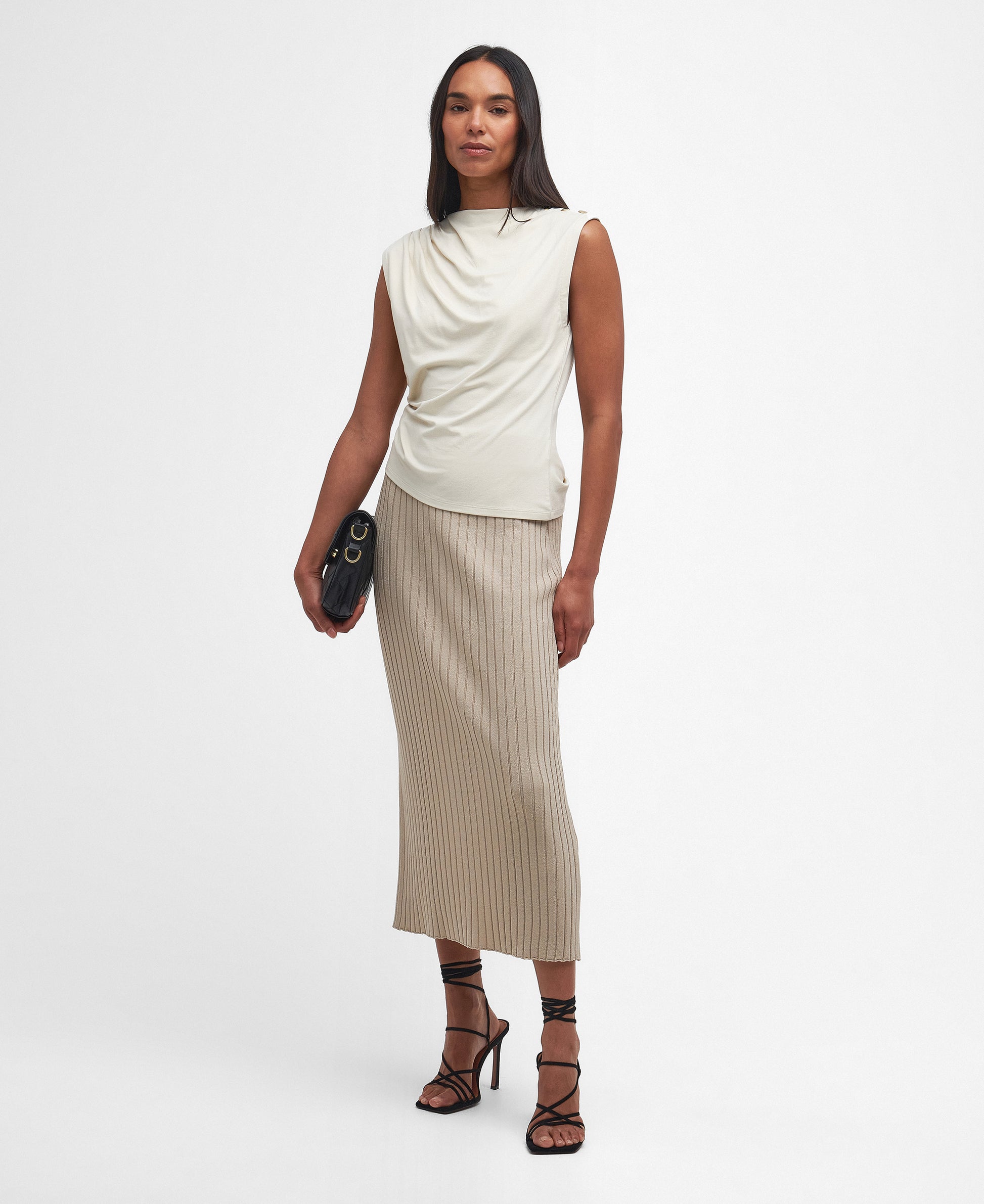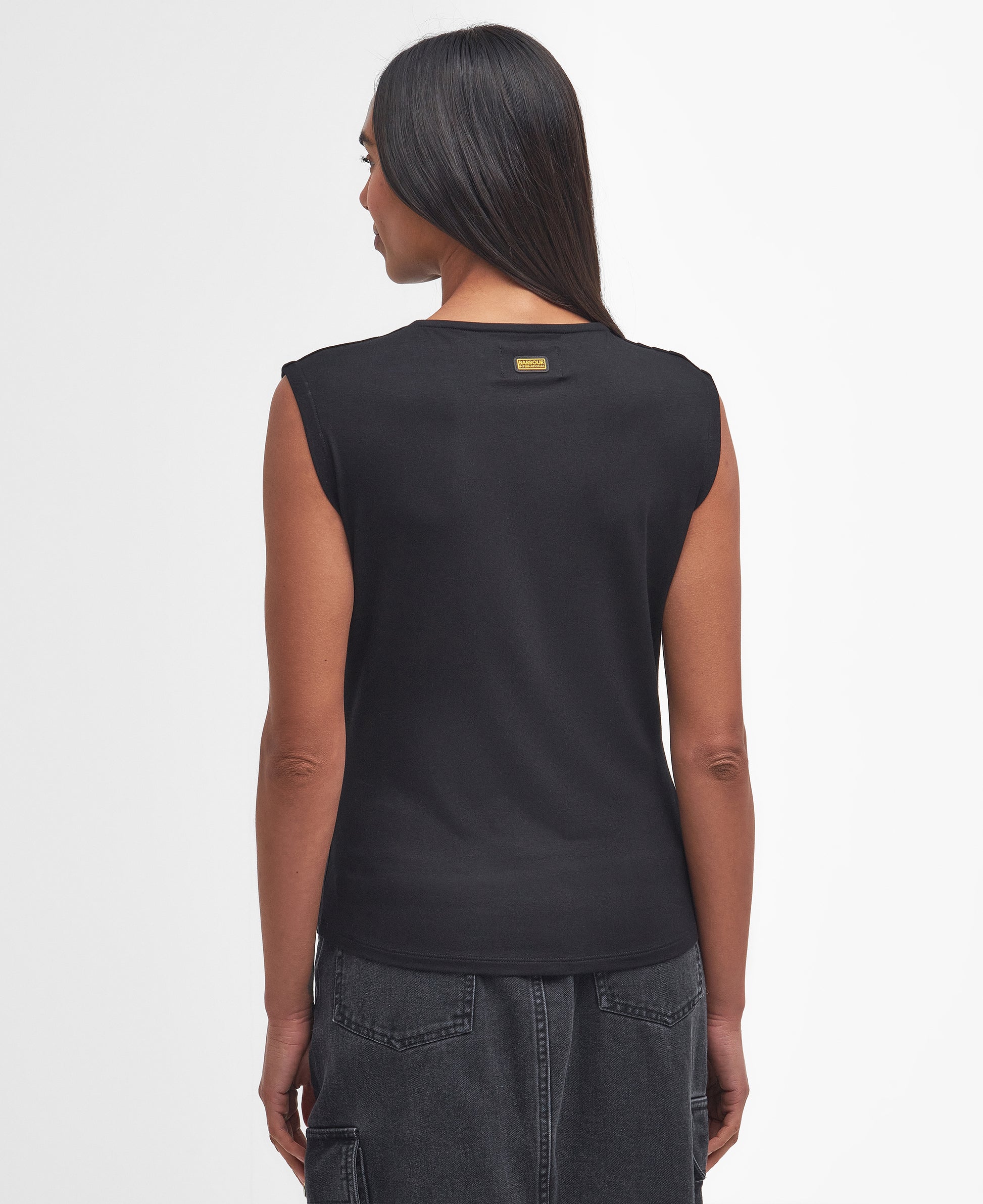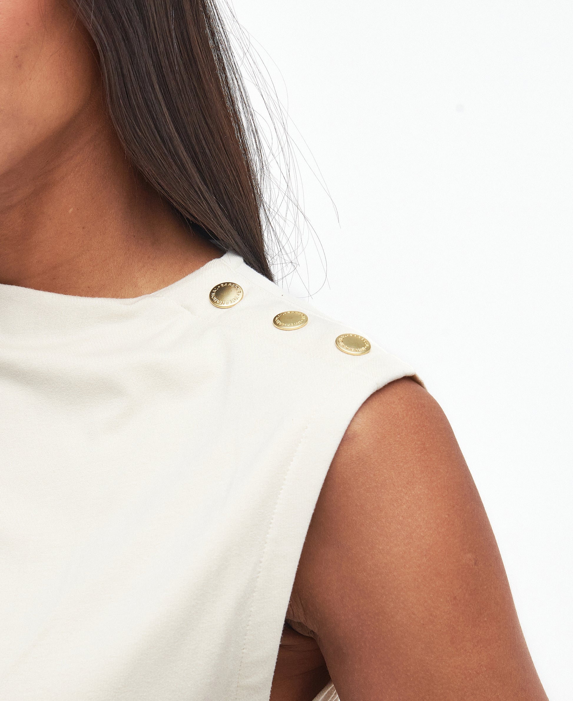 Elevate your seasonal wardrobe with the B.Intl Courtney T-Shirt. With pleated shoulder detailing and contrasting branded gold-tone studs to the shoulder, it's perfect for upgrading your summer edit. Simply pair it with smart trousers or jeans for an instantly elevated look.