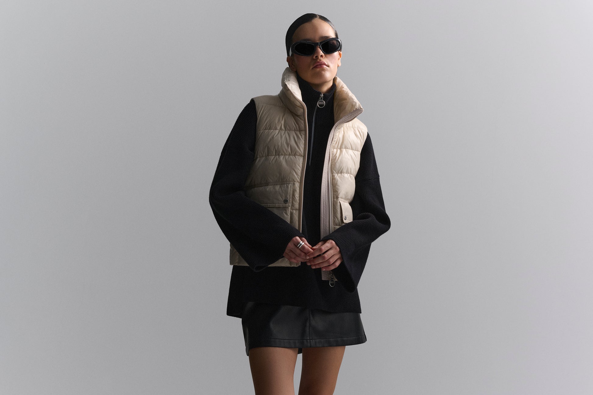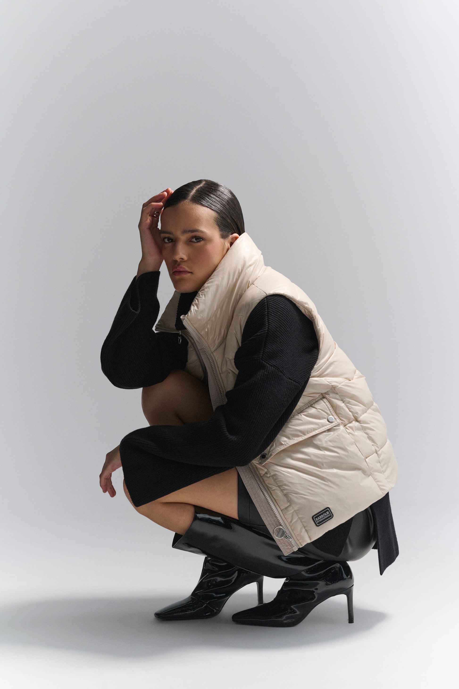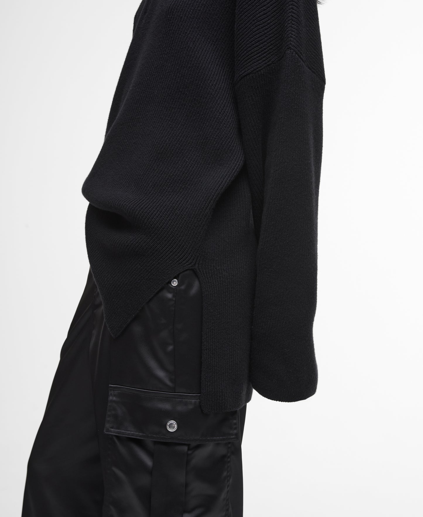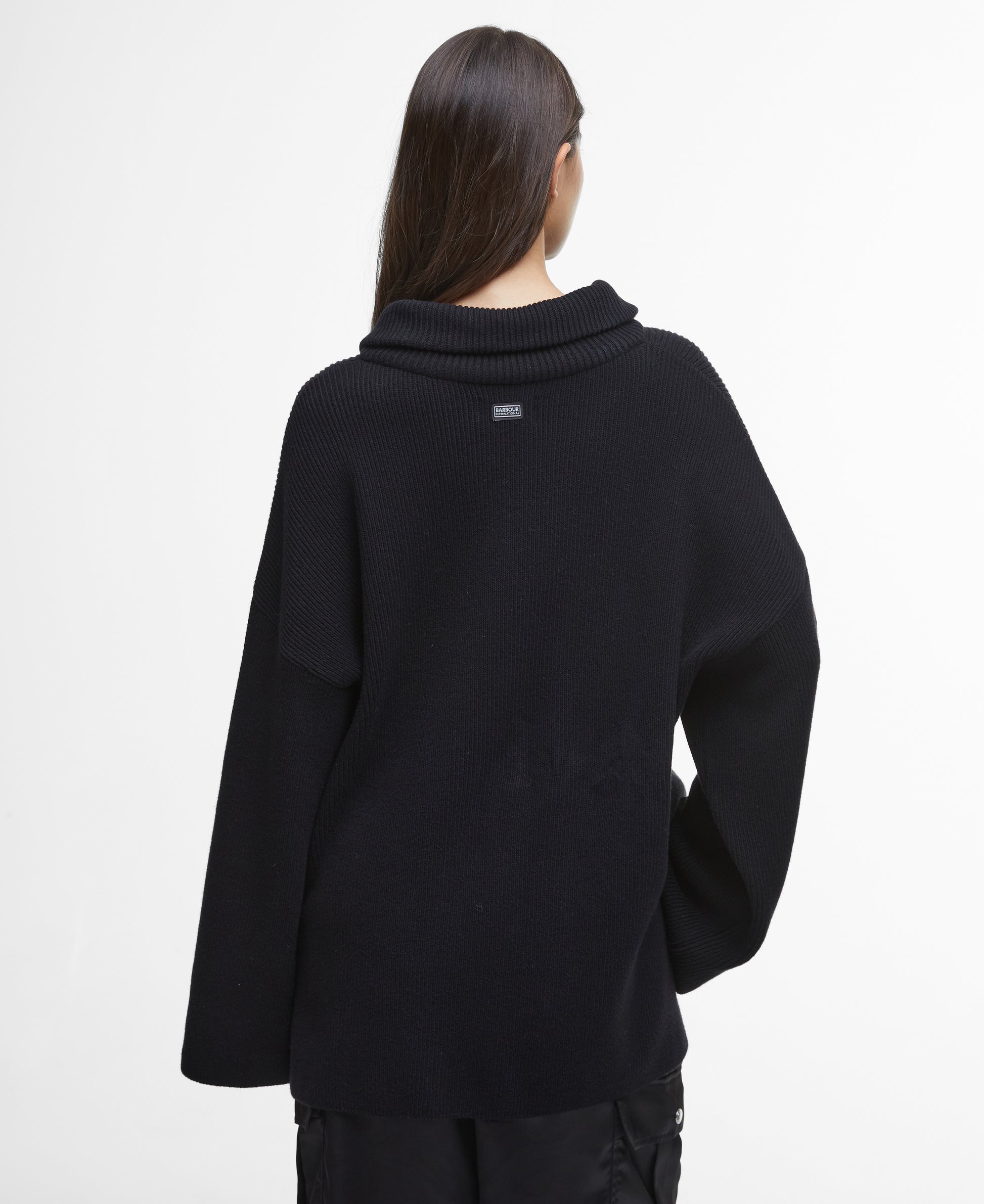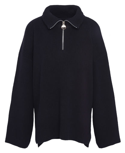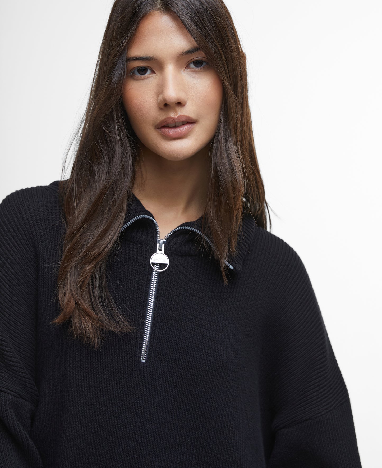 This season, timeless knitwear styles are elevated with bright silver hardware for a finishing touch that could only come from Barbour International. The B.Intl Franchesca Half-Zip Jumper features our iconic, branded ring-pull zip with wide sleeves and deep side splits to add to the bold new silhouette.