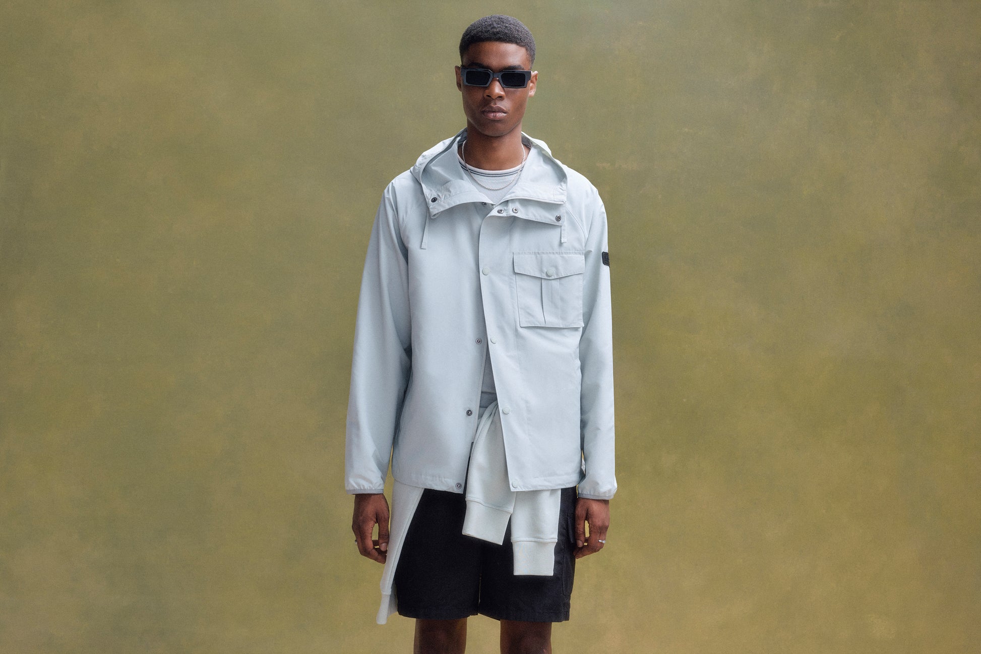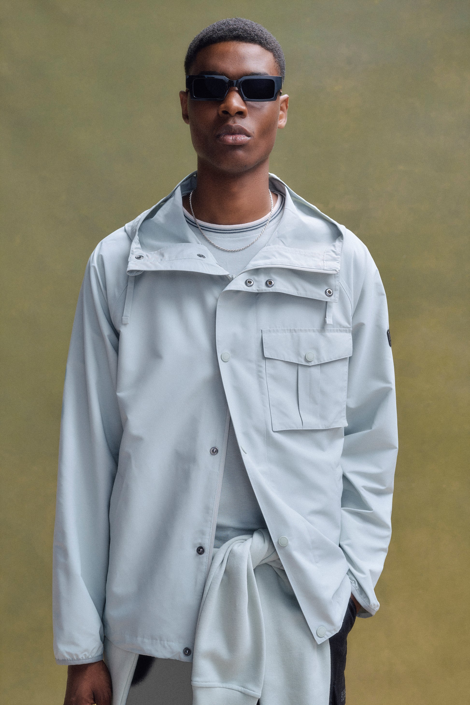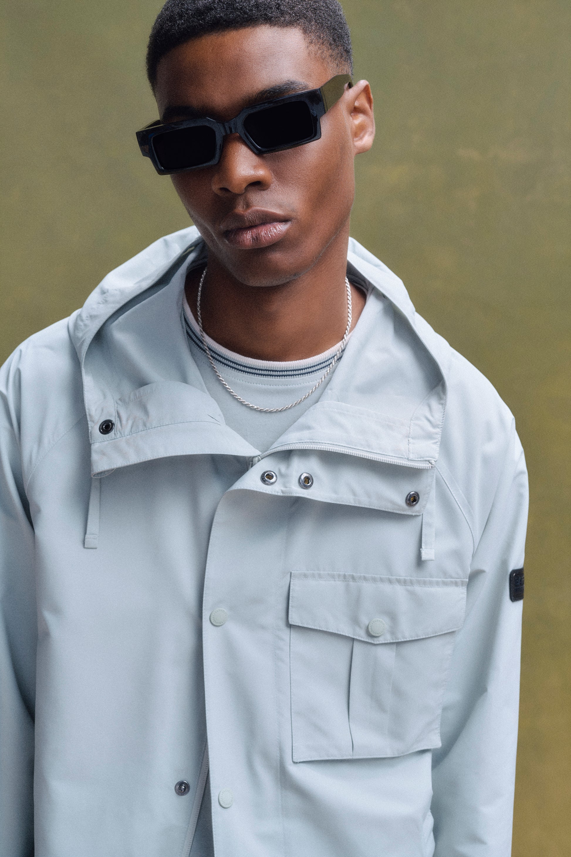 - Barbour International lozenge badge carried on the patch pocket on wearers left arm.