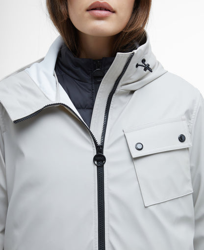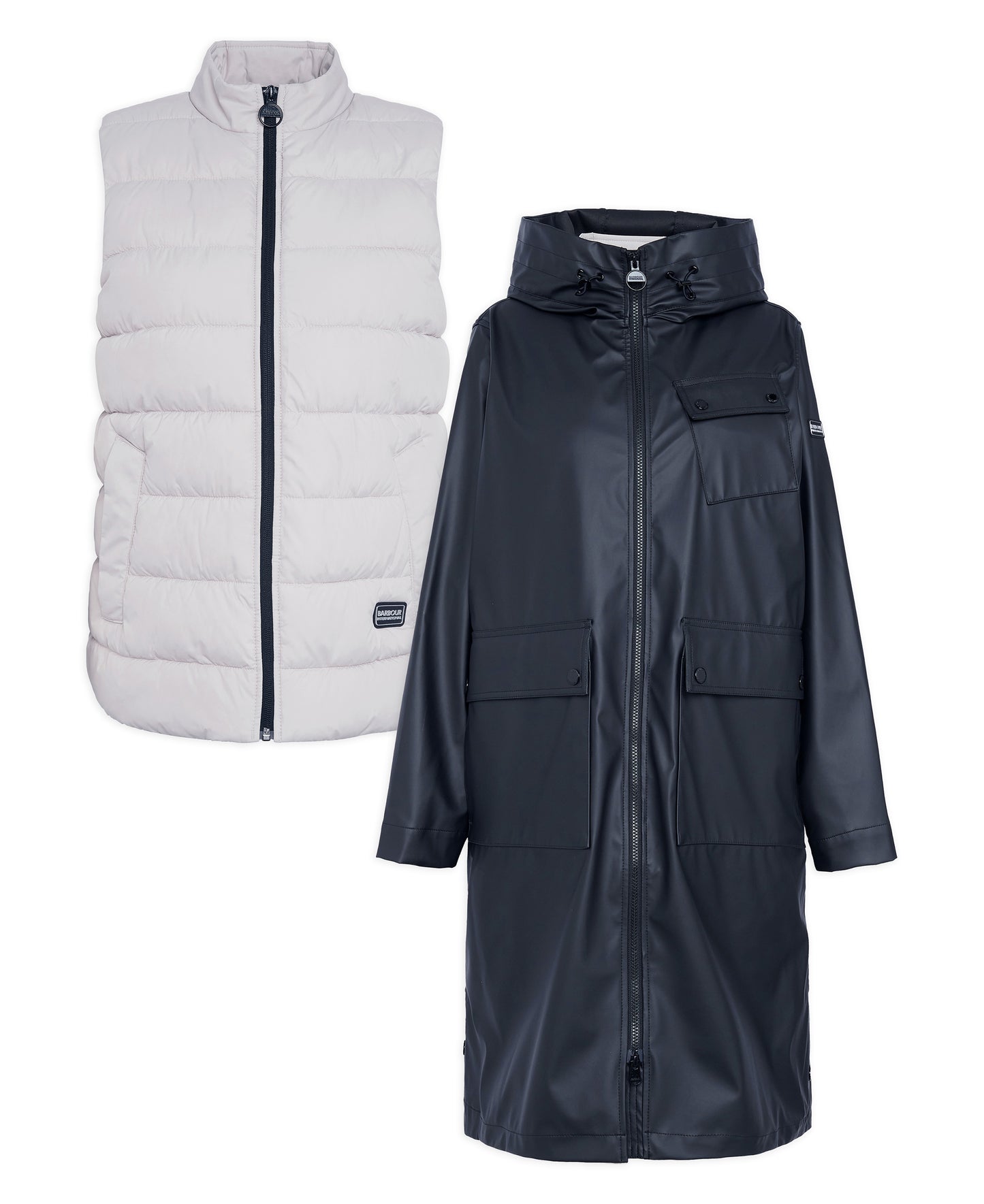 Whatever the weather, the B.Intl Jade 3-in-1 Showerproof Jacket has your wardrobe prepared. The longline showerproof jacket provides light protection while the addition of the interactive liner ensures you can add an extra layer of warmth whenever you need or remove it to wear the jacket or gilet alone when the weather is milder. Simply detailed with Barbour Internationals angled map pocket and oversized patch pockets, this style is perfect for the unpredictable British weather.